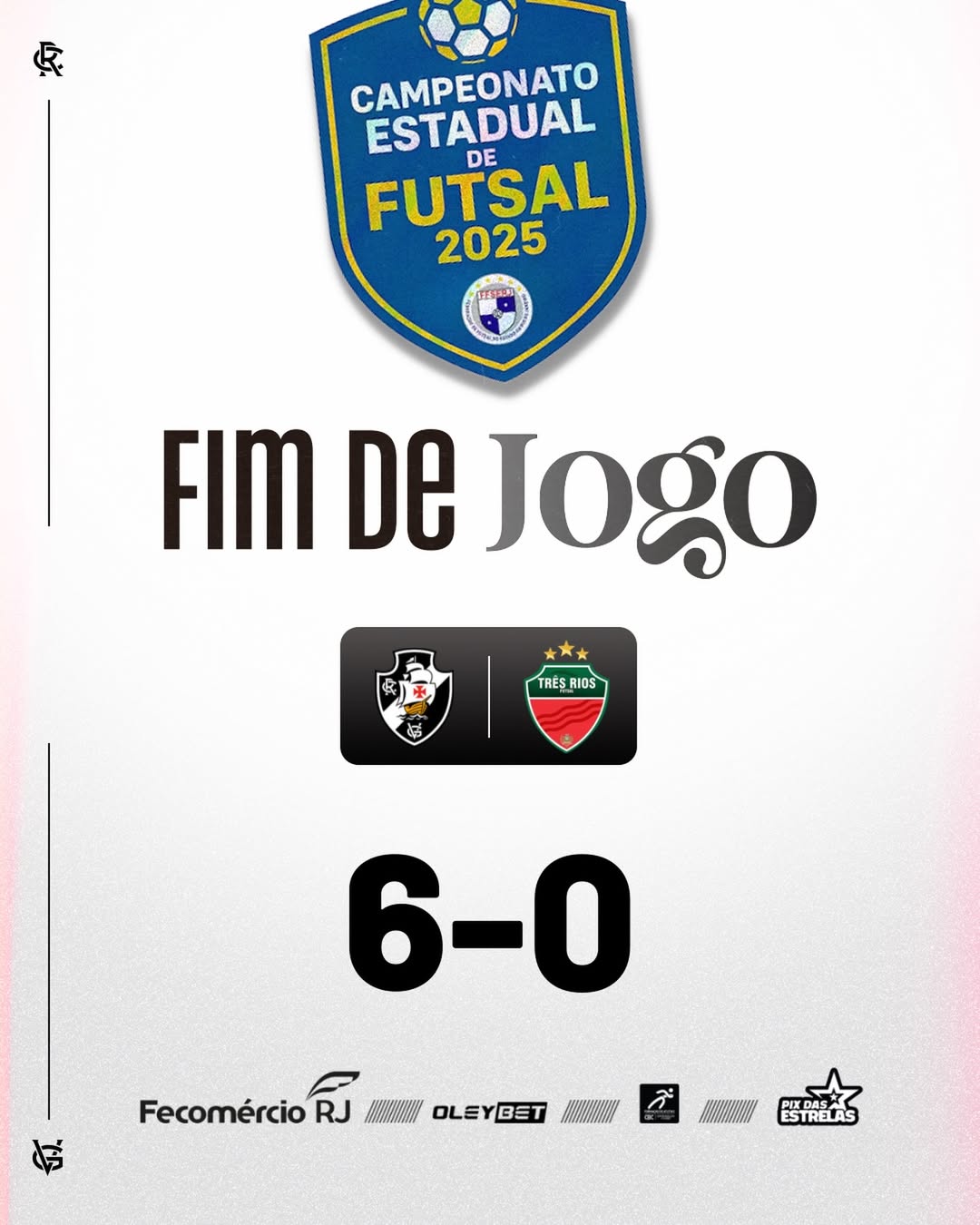 Futsal: Vasco goleia o Três Rios e vai à semifinal do Estadual