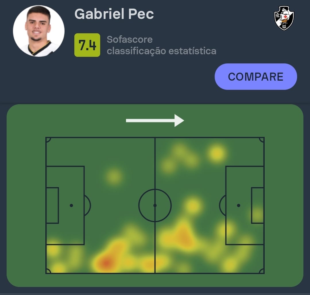 Gabriel Pec foi o Destaque Sofascore de Vasco 2-2 Palmeiras!