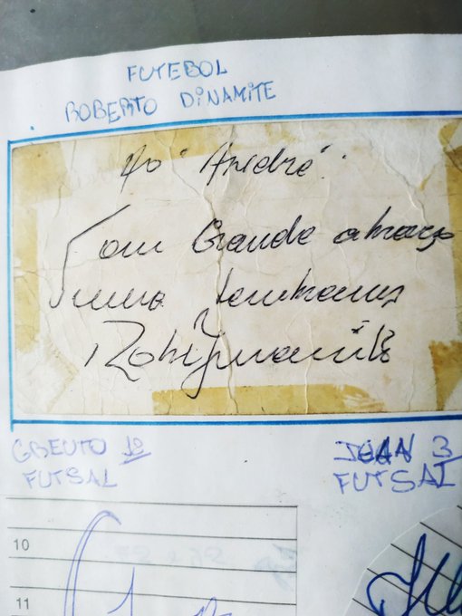 Acabei de achar aqui em casa o primeiro autógrafo que consegui: Roberto Dinamite, 1993.