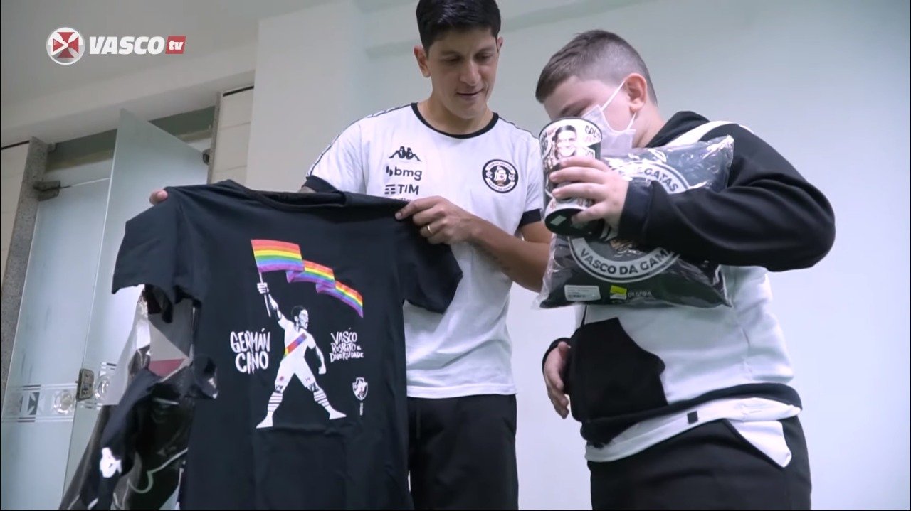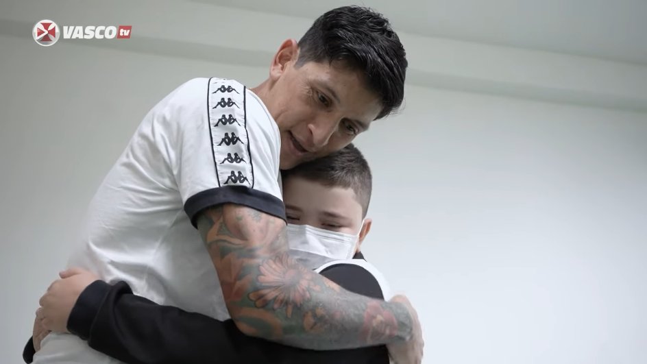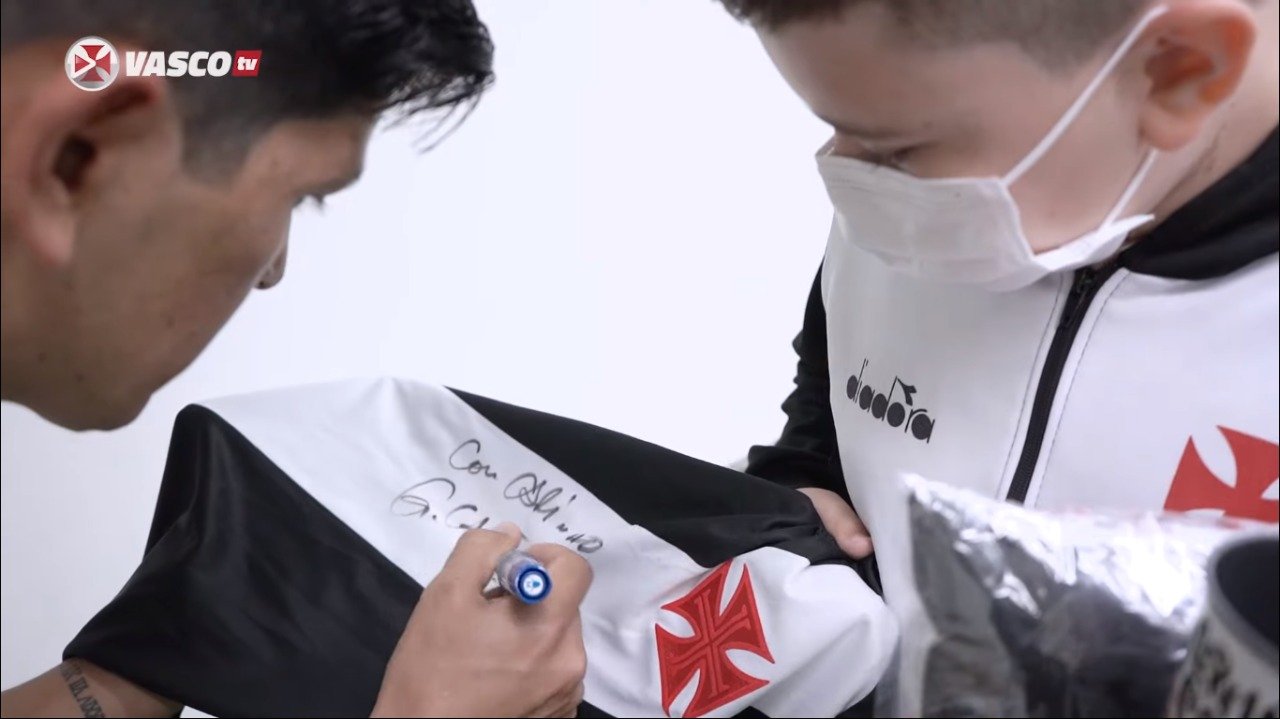 Germán Cano abraçou pequeno vascaíno e deu presentes