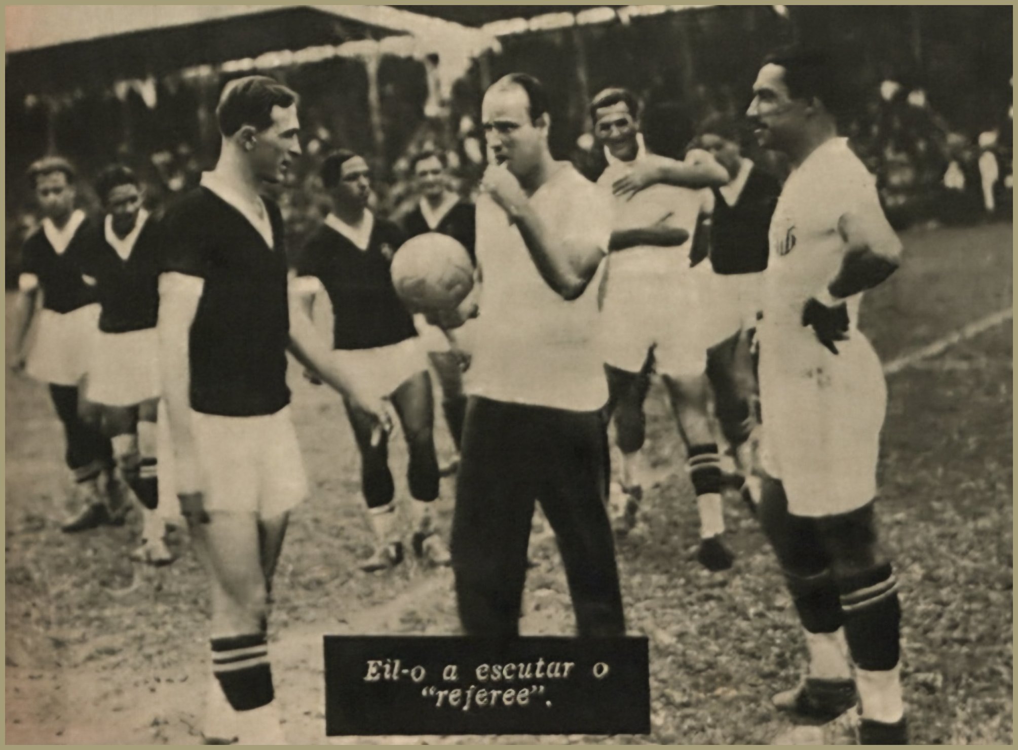 Na imagem vemos em destaque o capitão Italia durante o apito do árbitro para início da partida no campo do adverário na rua Figueira de Melo.