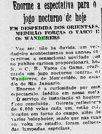 Há 94 anos, Vasco vencia o Montevideo Wanderers-URU