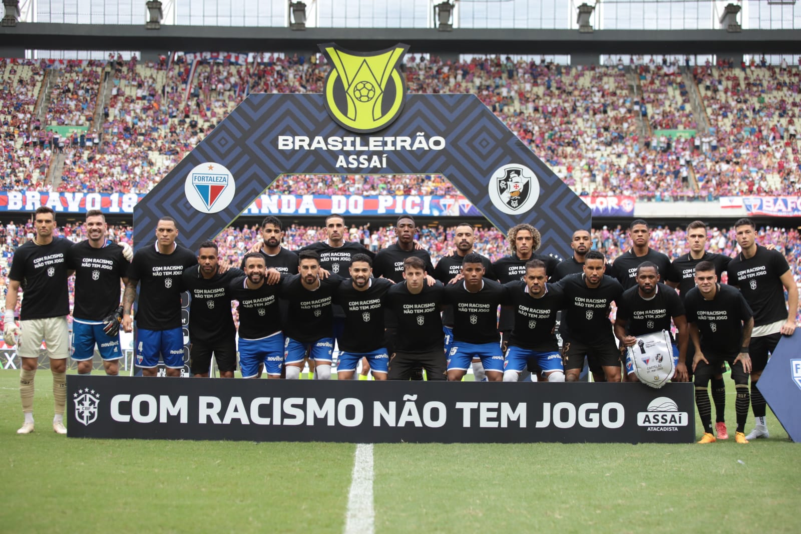 Jogadores de Fortaleza e Vasco posam para foto antes da bola rolar