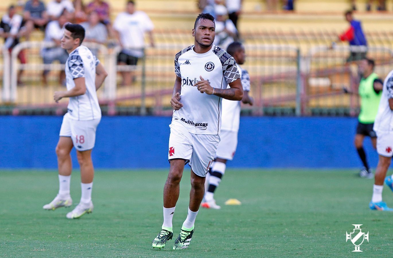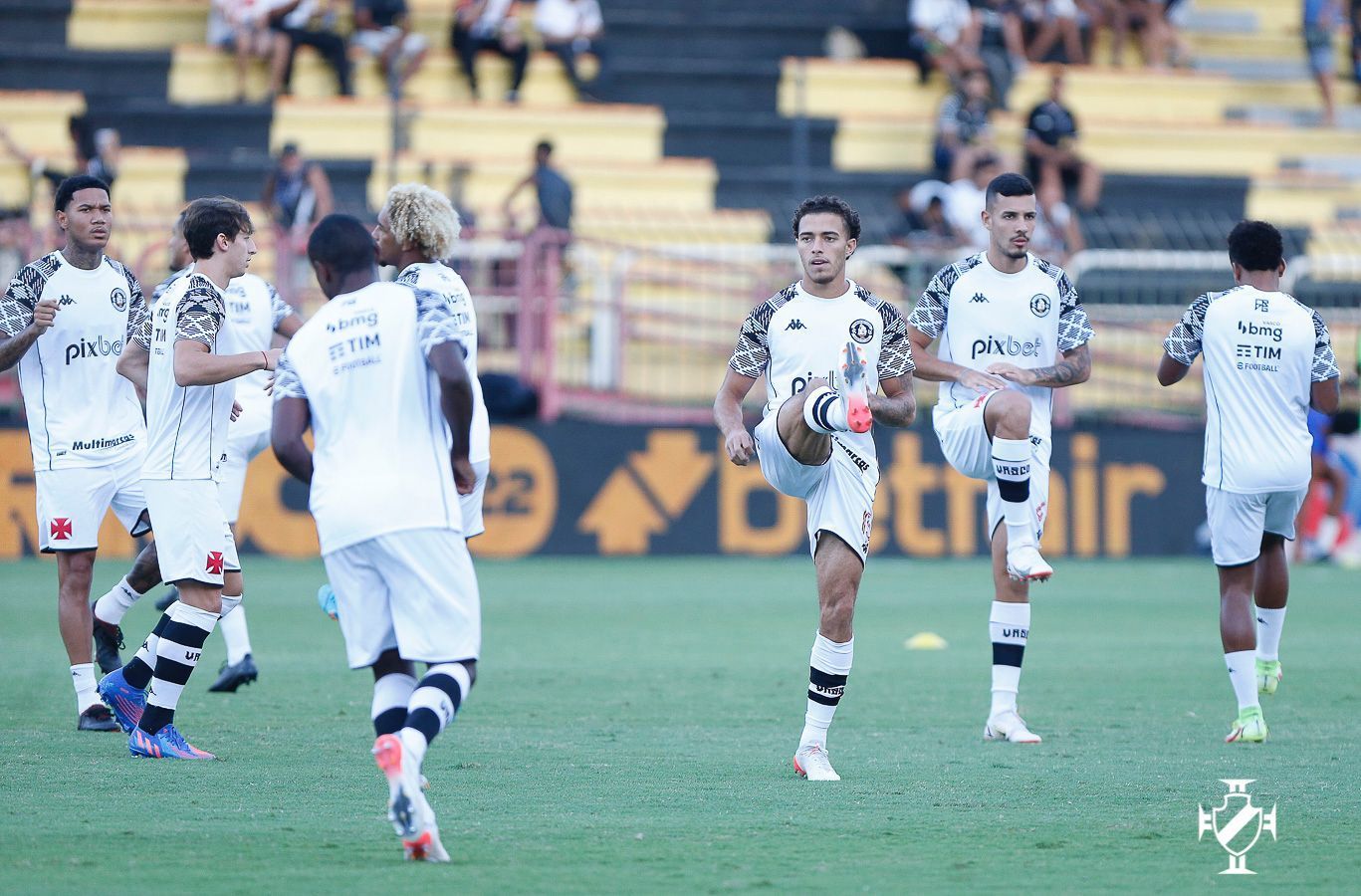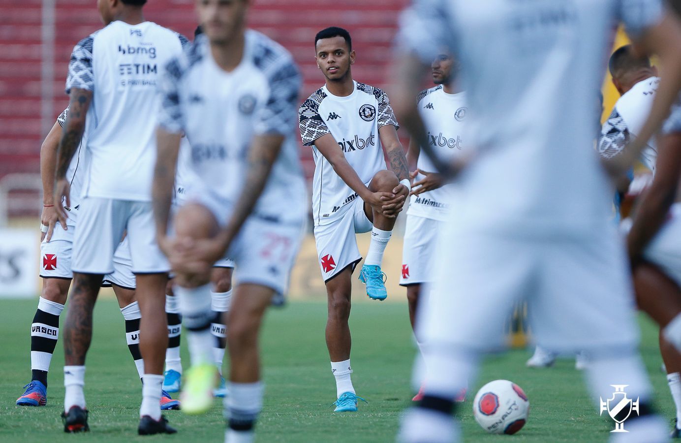 Jogadores do Vasco se aquecem no gramado do Raulino de Oliveira