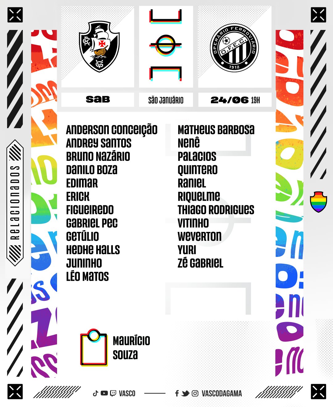 Confira os relacionados pelo técnico Maurício Souza para a partida desta noite em São Januário!