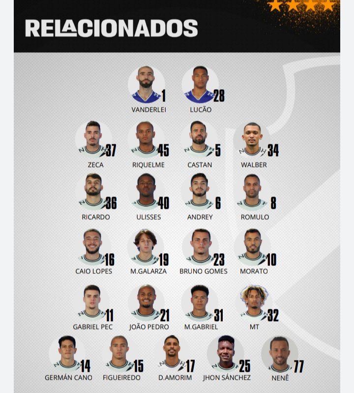 Jogadores relacionados para enfrentar o Vitória nesta quarta-feira (10)