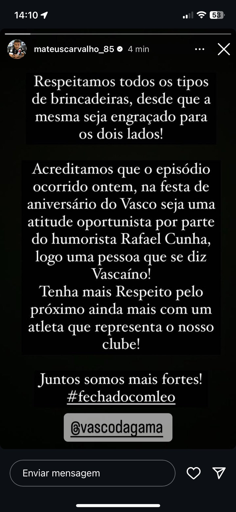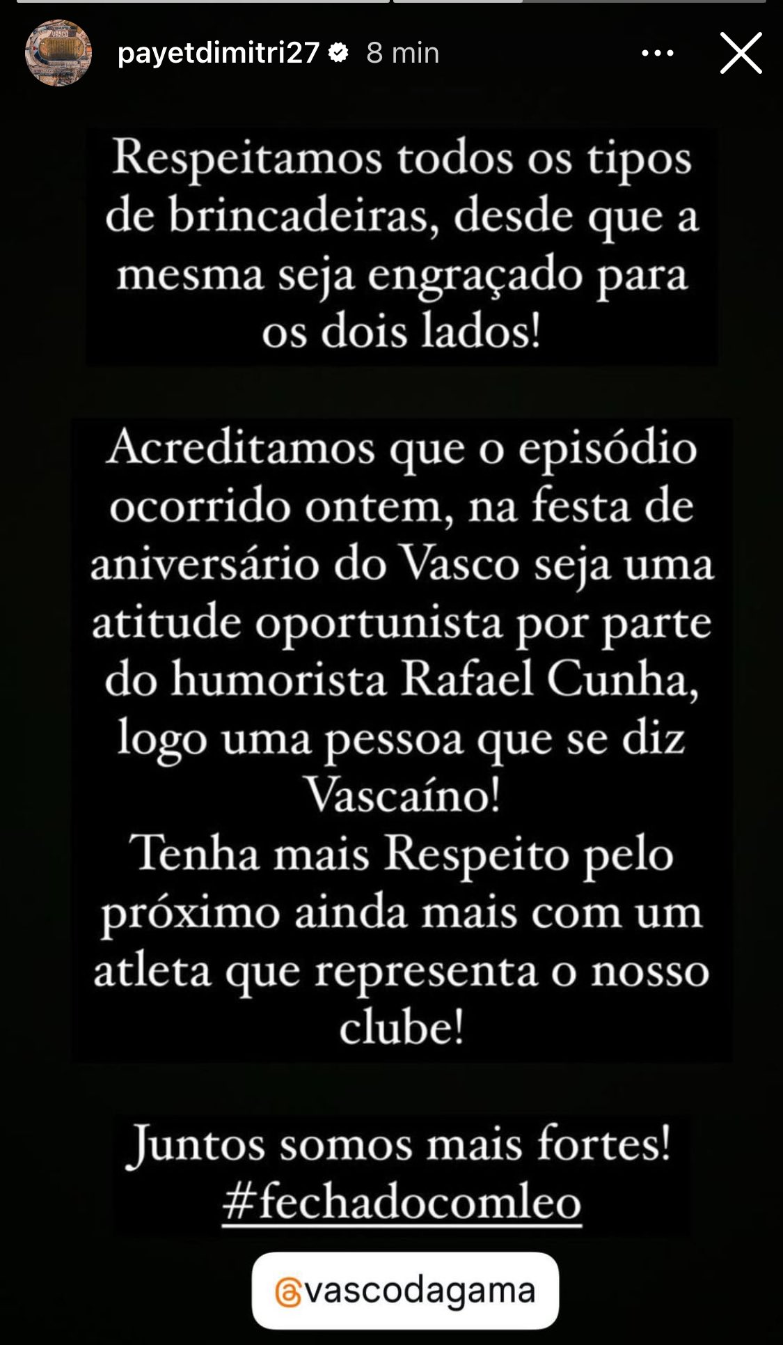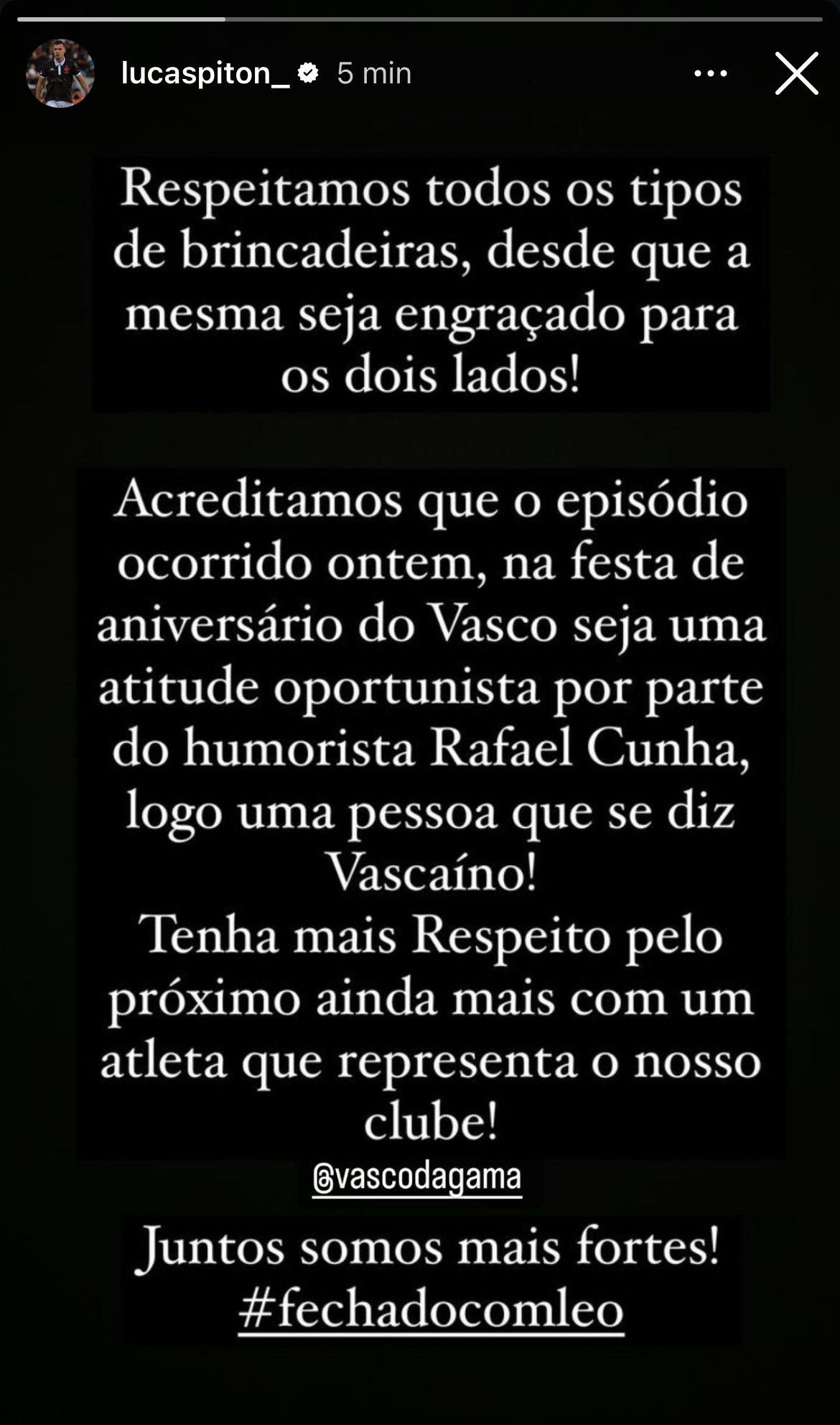 Jogadores do Vasco se manifestam repudiando a piada com o zagueiro Léo.