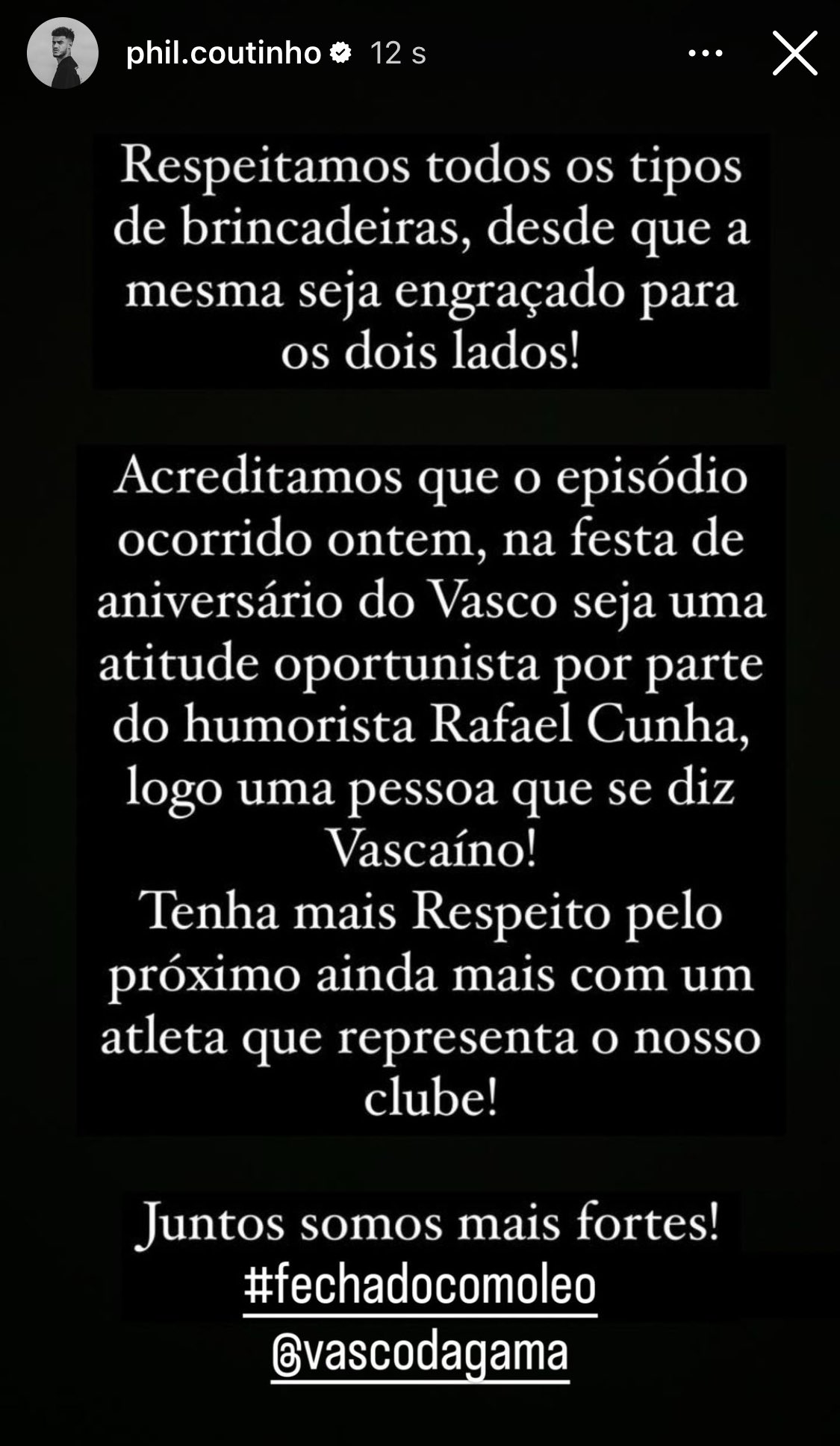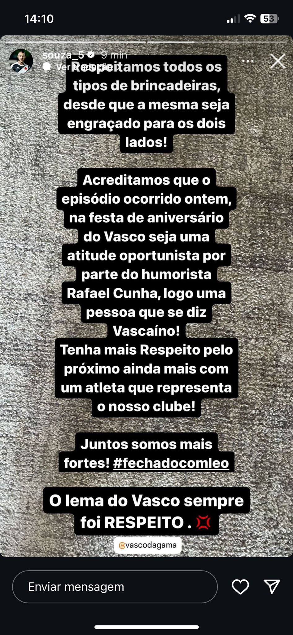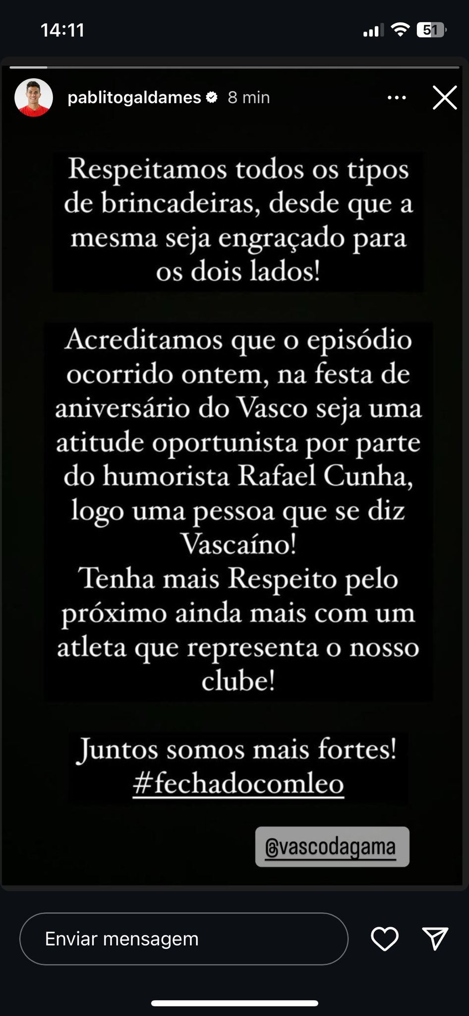 Jogadores do Vasco se manifestam repudiando a piada com o zagueiro Léo.
