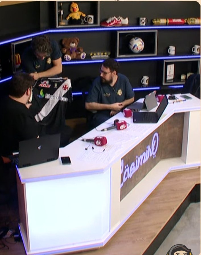 Juninho Pernambucano presenteia Casimiro com uma camisa do Vasco