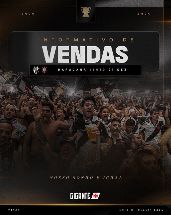 🎟️ Os ingressos para a partida de volta da final da Copa do Brasil, contra o Corinthians (21/12), estarão à venda a partir desta terça-feira (16), às 10h.