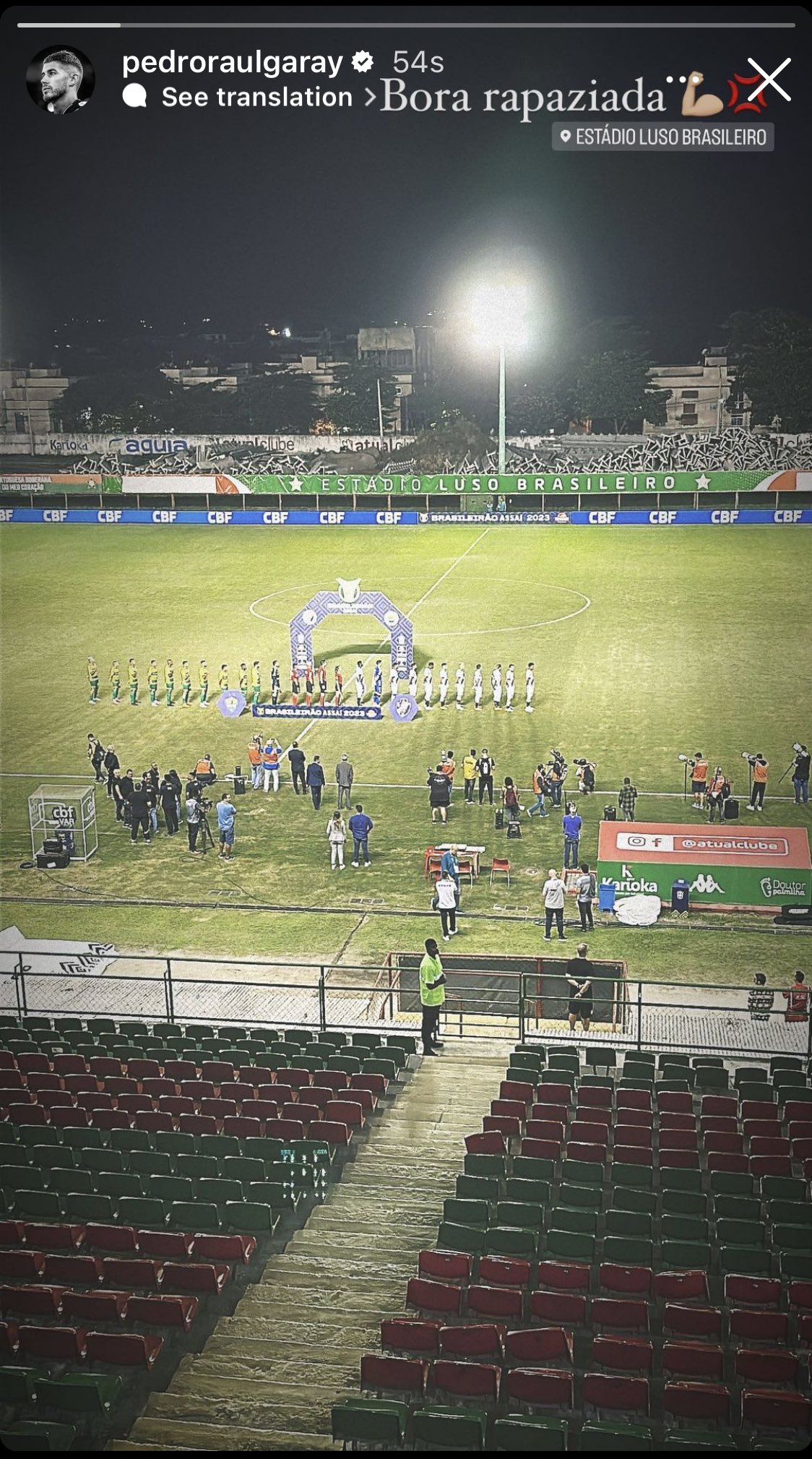 Fora do jogo por lesão, o atacante Pedro Raul está presente no Luso-Brasileiro para acompanhar a partida de daqui a pouco.