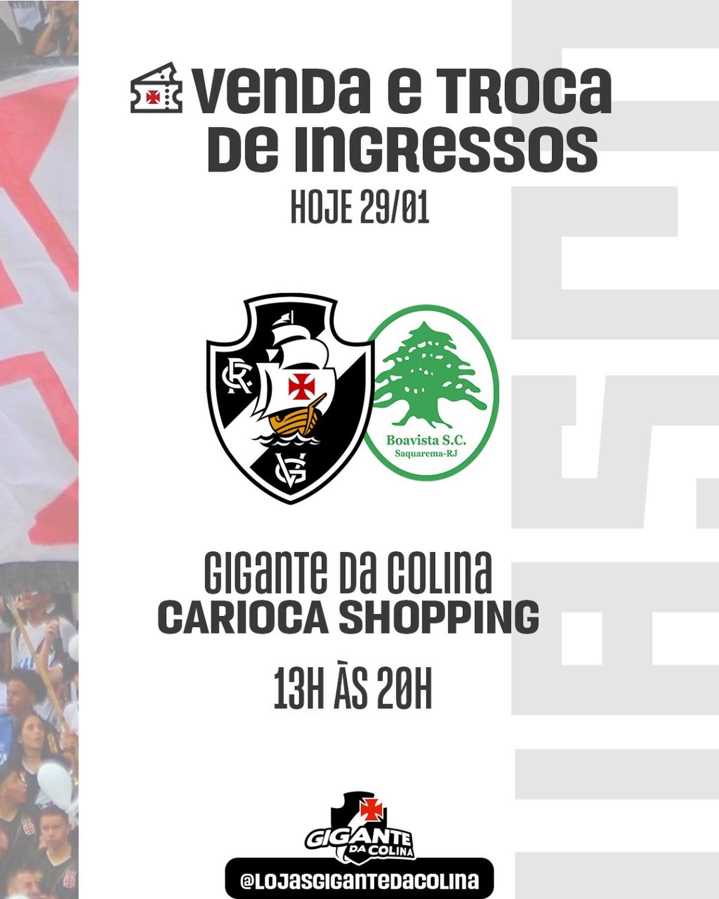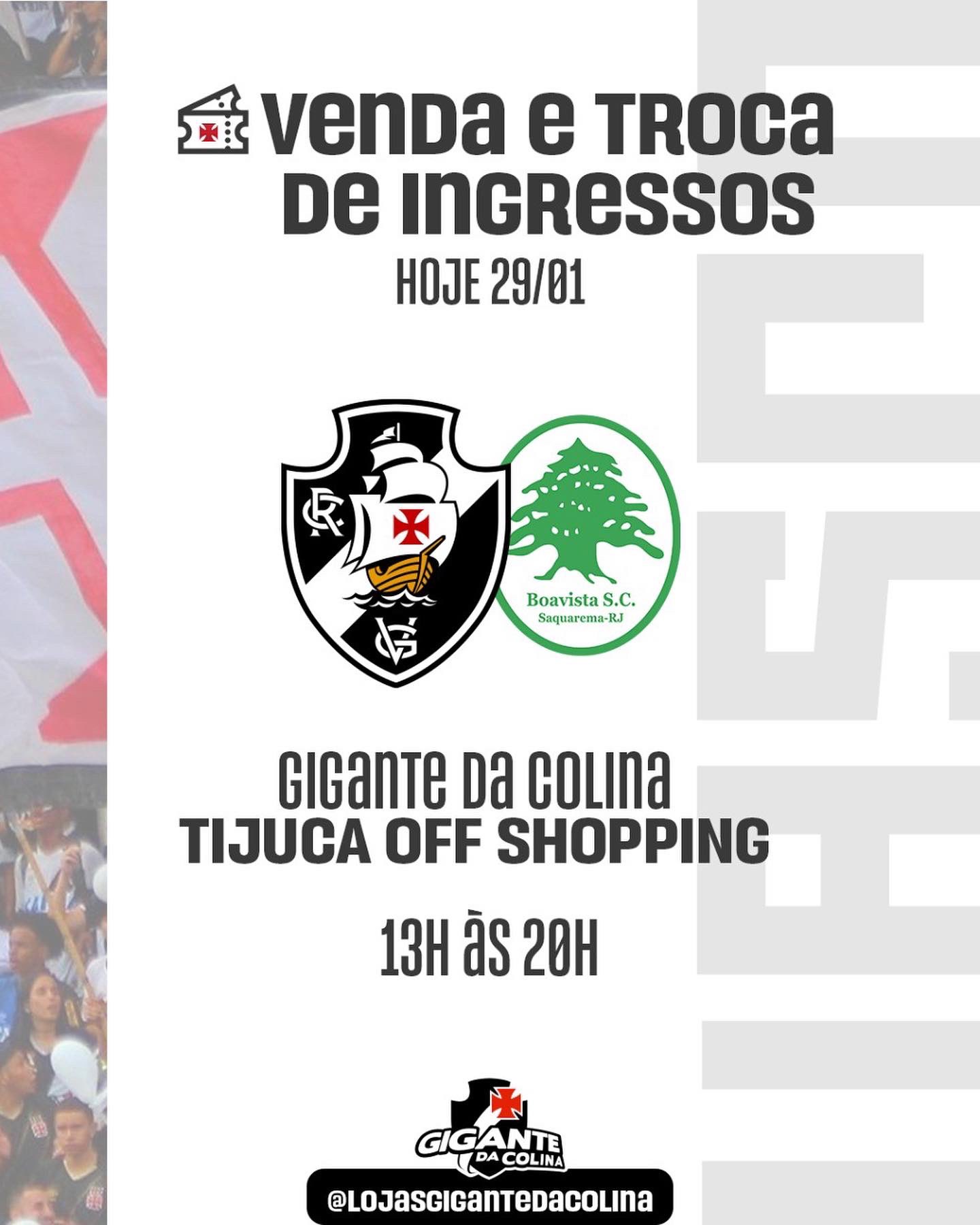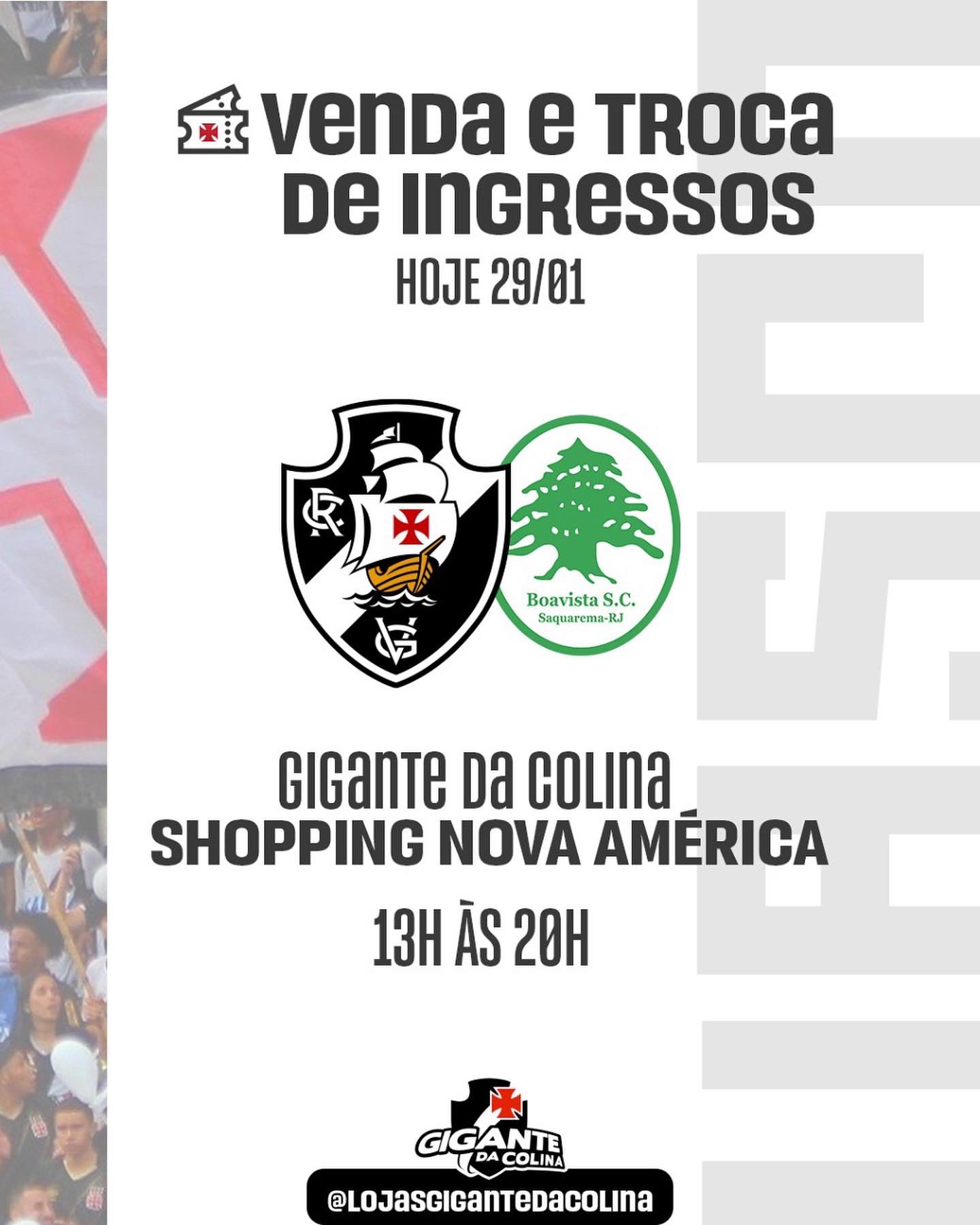 Lojas do Vasco que vendem e trocam ingressos para o jogo contra o Boavista