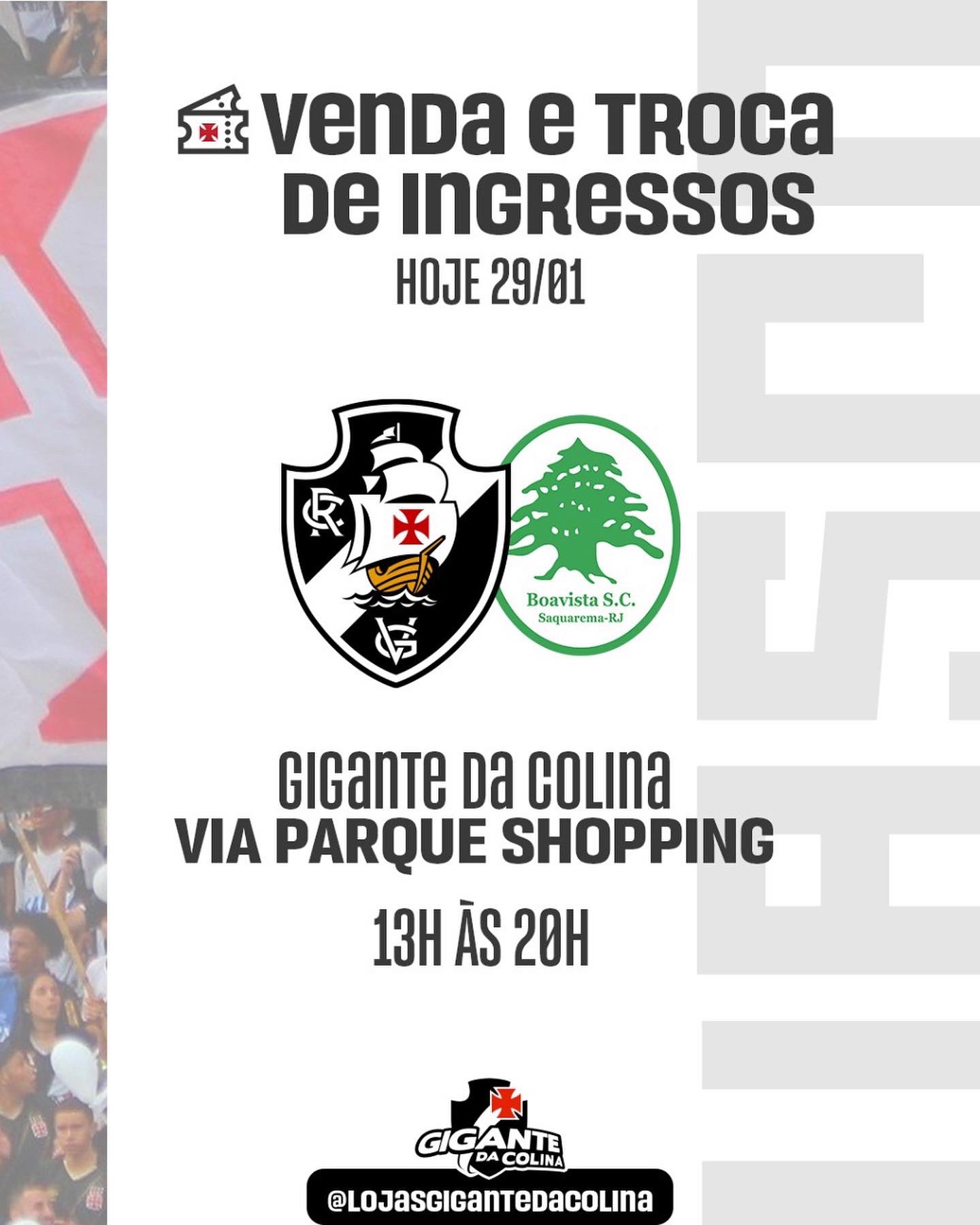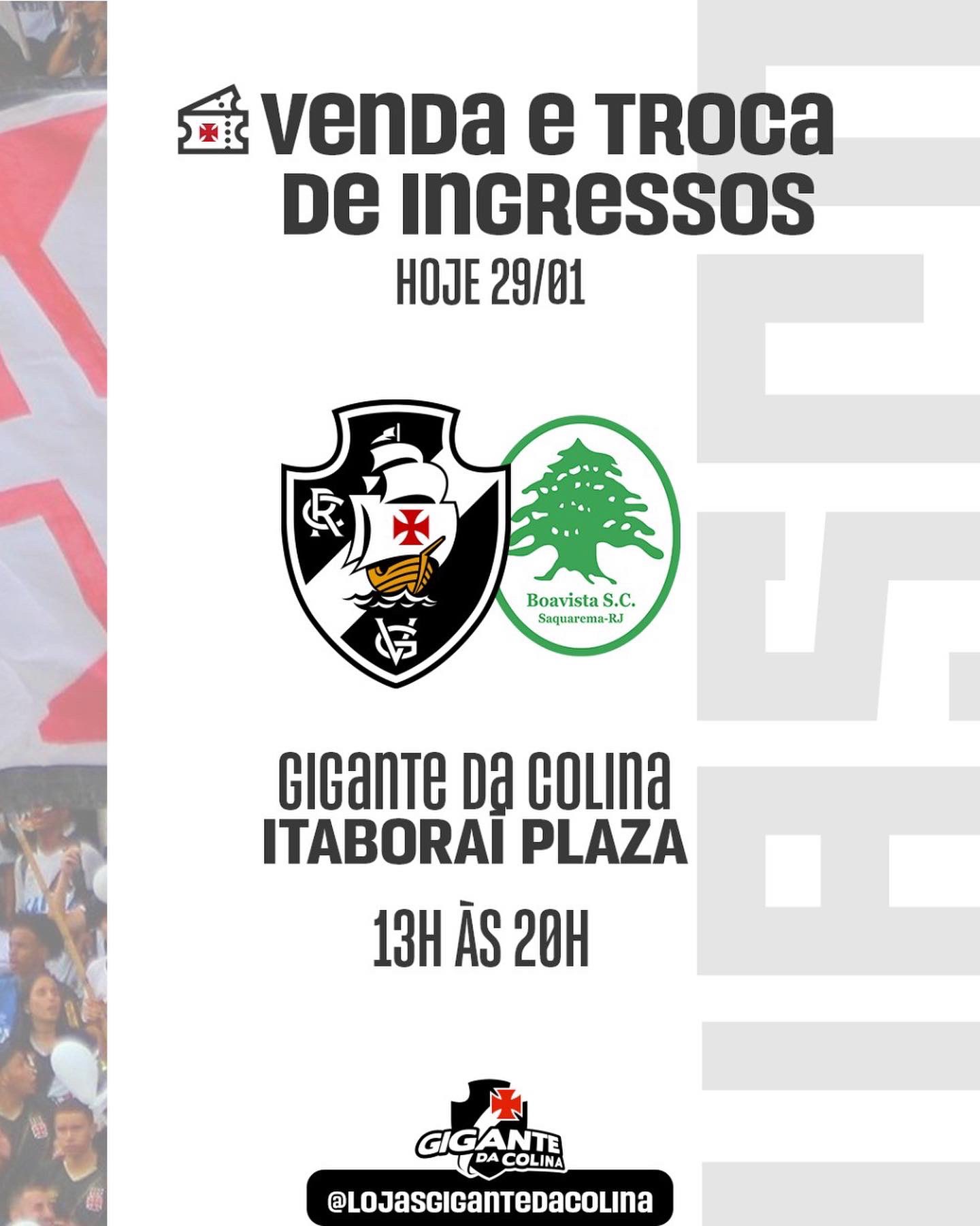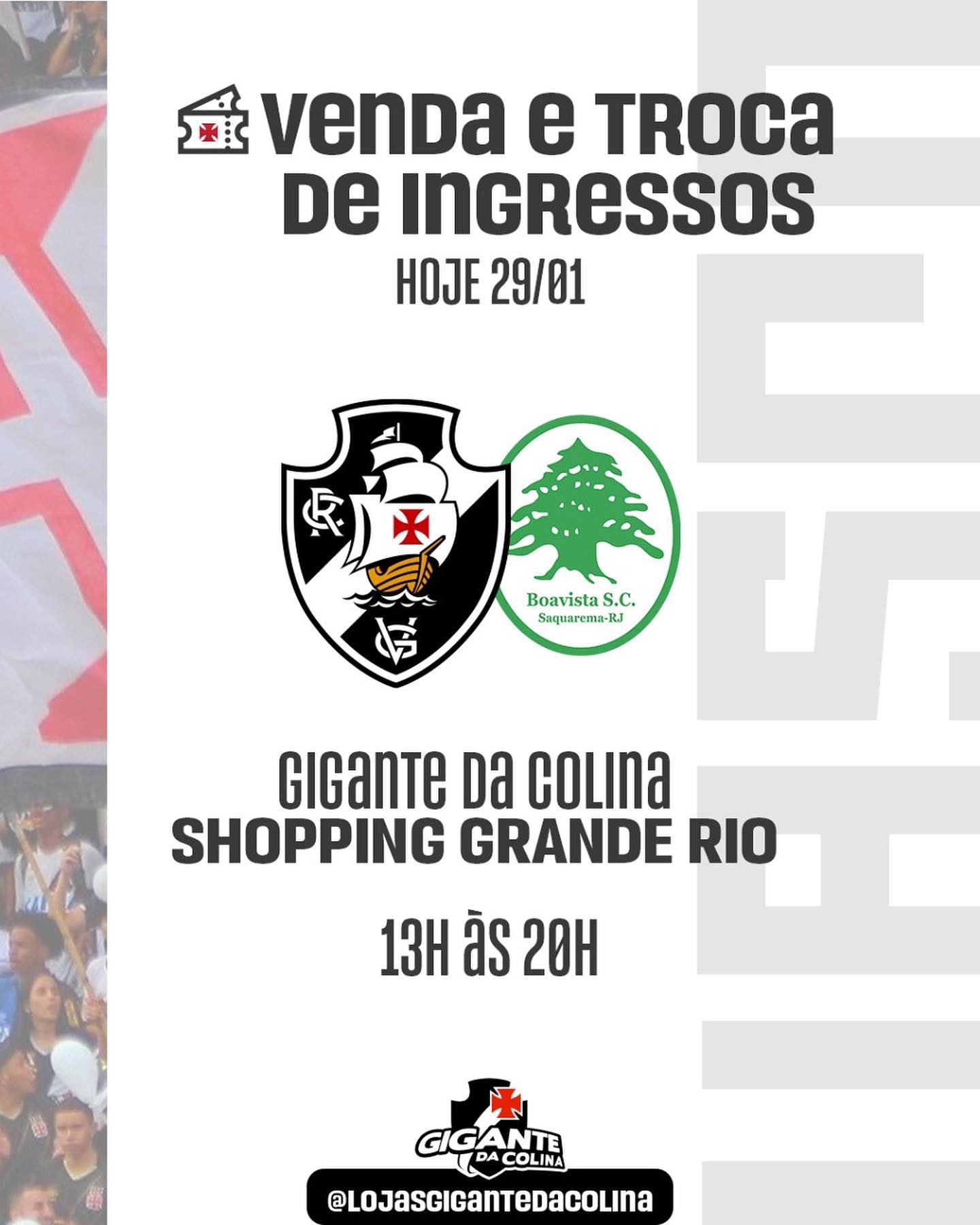 Lojas do Vasco que vendem e trocam ingressos para o jogo contra o Boavista