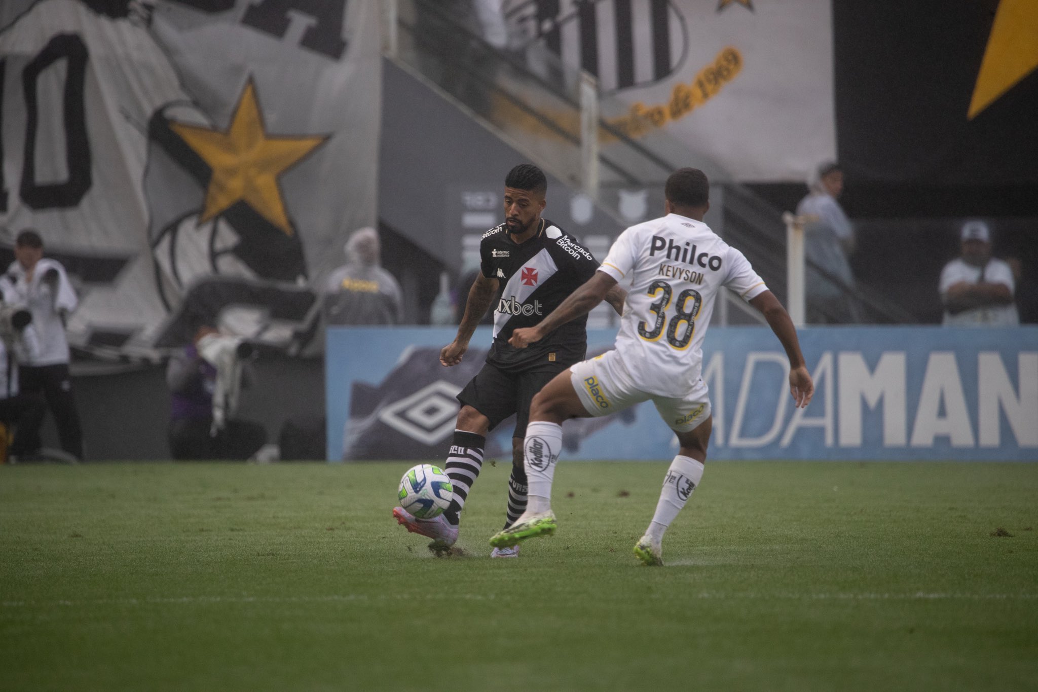 A ideia era ter mais volume, se lançar e ter mais qualidade com a bola no pé. Logo no início, o Vasco criou uma grande chance com Sebastian. Guardem esse nome. Ele tentou dar uma “troncada” na bola e perdeu. Depois o Soteldo fez sua graça, DO JOGO, e o mesmo Sebastian tentou agredir o meia do Santos. Resultado?
