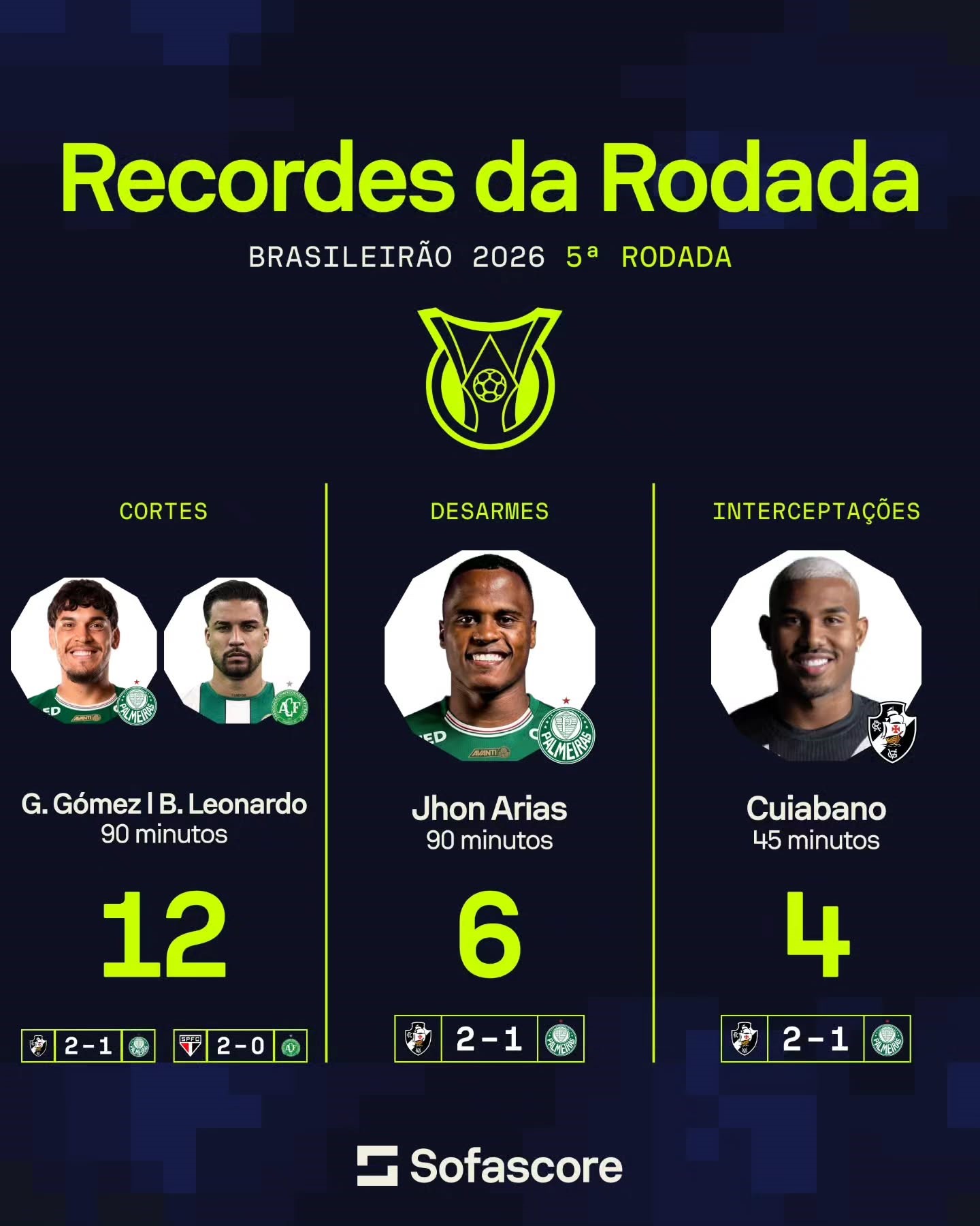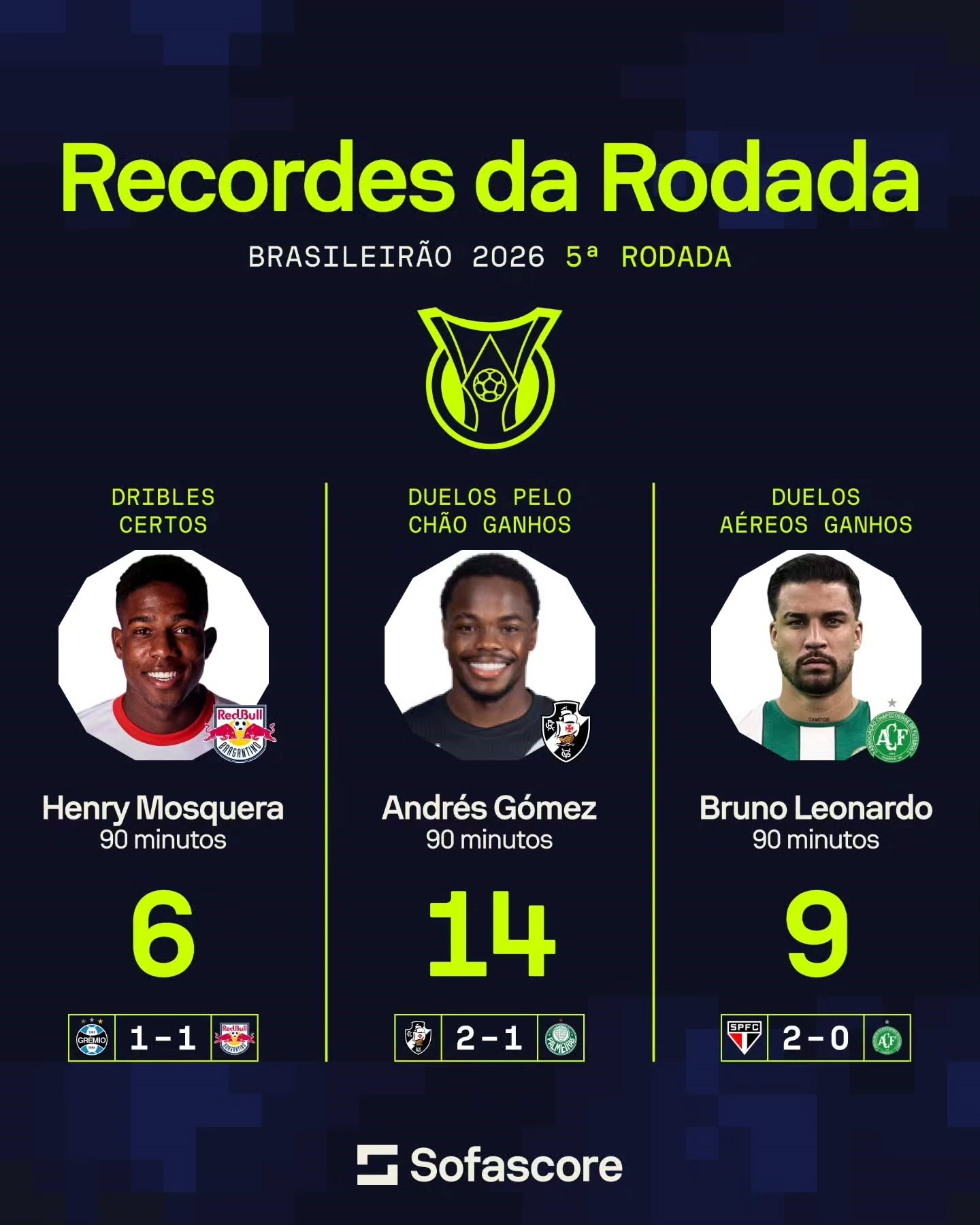 Maiores marcas em diversas estatísticas na 5ª rodada do Brasileirão 2026