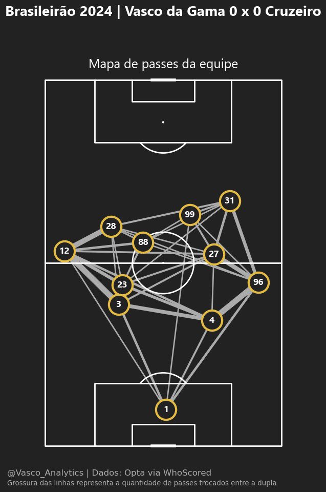 Mapa de passes de Vasco 0 x 0 Cruzeiro