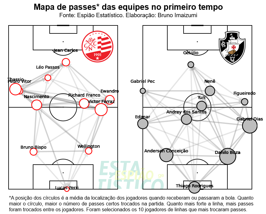 Mapa de passes do primeiro tempo entre Náutico x Vasco