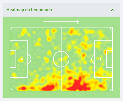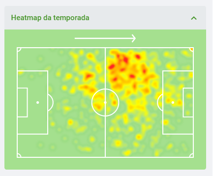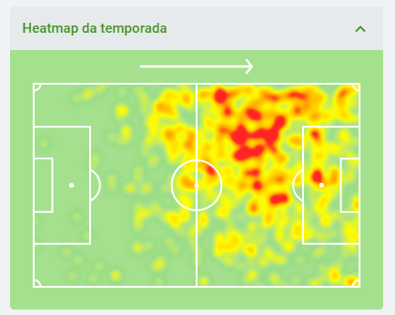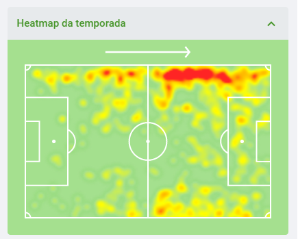 O primeiro mapa de calor é o do Alex Teixeira pelo Besiktas na temporada européia recentemente finalizada. O segundo refere-se à temporada 2020, a sua última pelo Jiangsu Suning.
