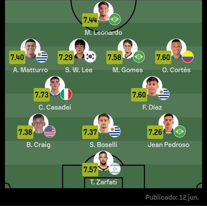 DESTAQUE! O cria Marlon Gomes está presente na seleção das 11 melhores notas da Copa do Mundo Sub-20, que se encerrou ontem.