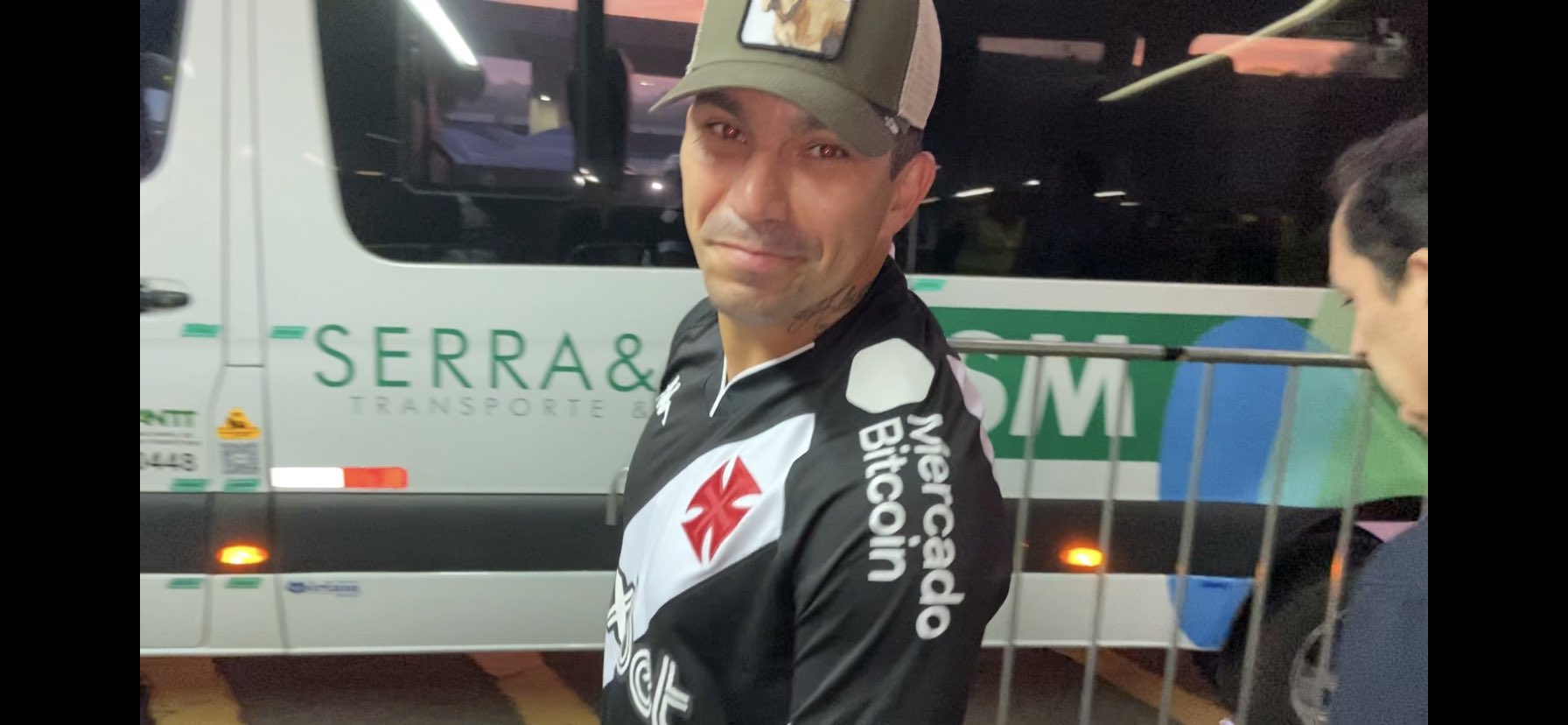 Já está no Rio de Janeiro o chileno Gary Medel! Vestindo a camisa 17, o número que gosta de vestir, o volante mandou uma mensagem de saudação aos vascaínos! Logo mais, o vídeo da chegada do pitbull.