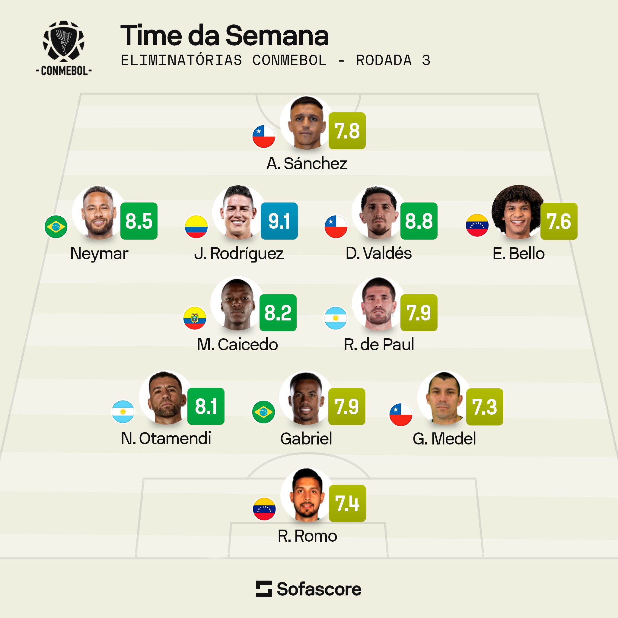 Seleção Sofascore da 3ª rodada das Eliminatórias da CONMEBOL! O que acharam? 🤔
