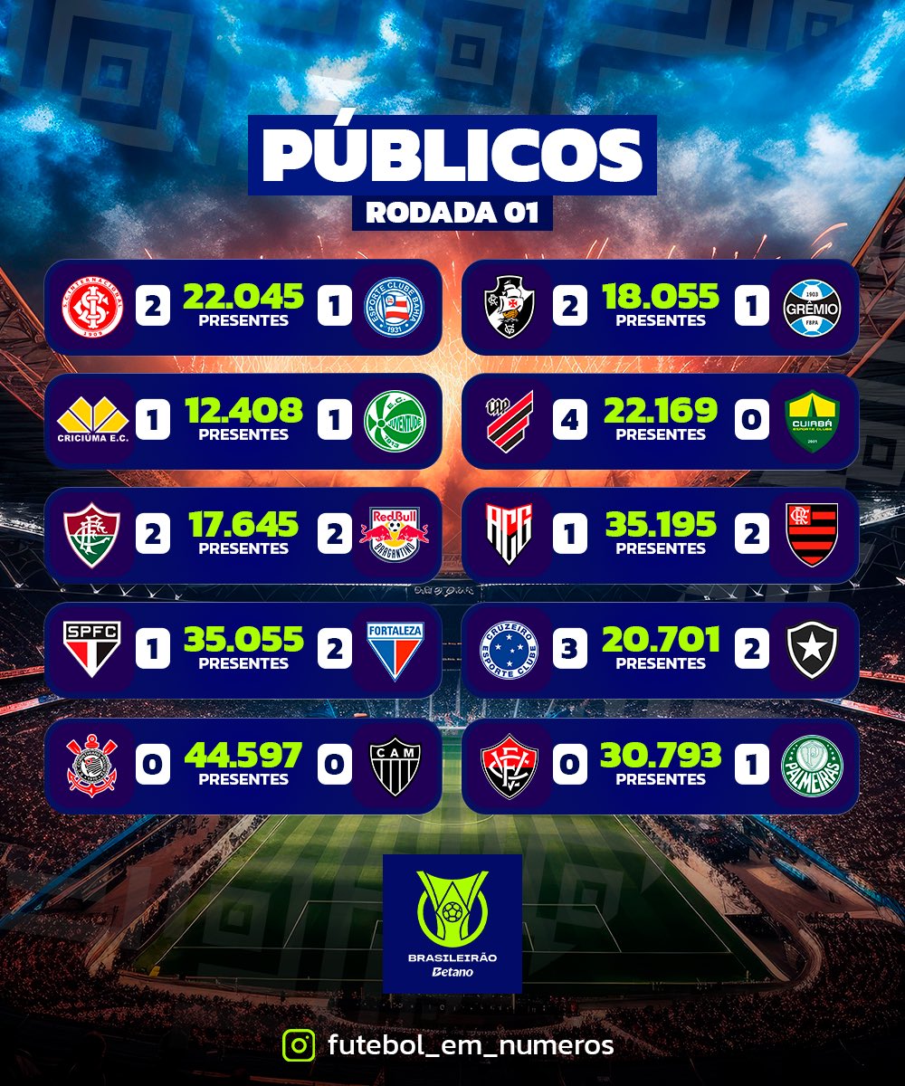 Casas cheias e uma média de público incrível pra começar o #BrasileirãoBetano da melhor maneira! O show nas arquibancadas é sempre o #NossoMelhor! 🏟️