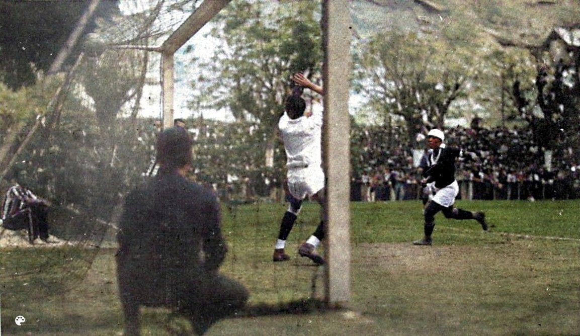 Momento de gol do Vasco sobre o Flamengo no clássico de 1928