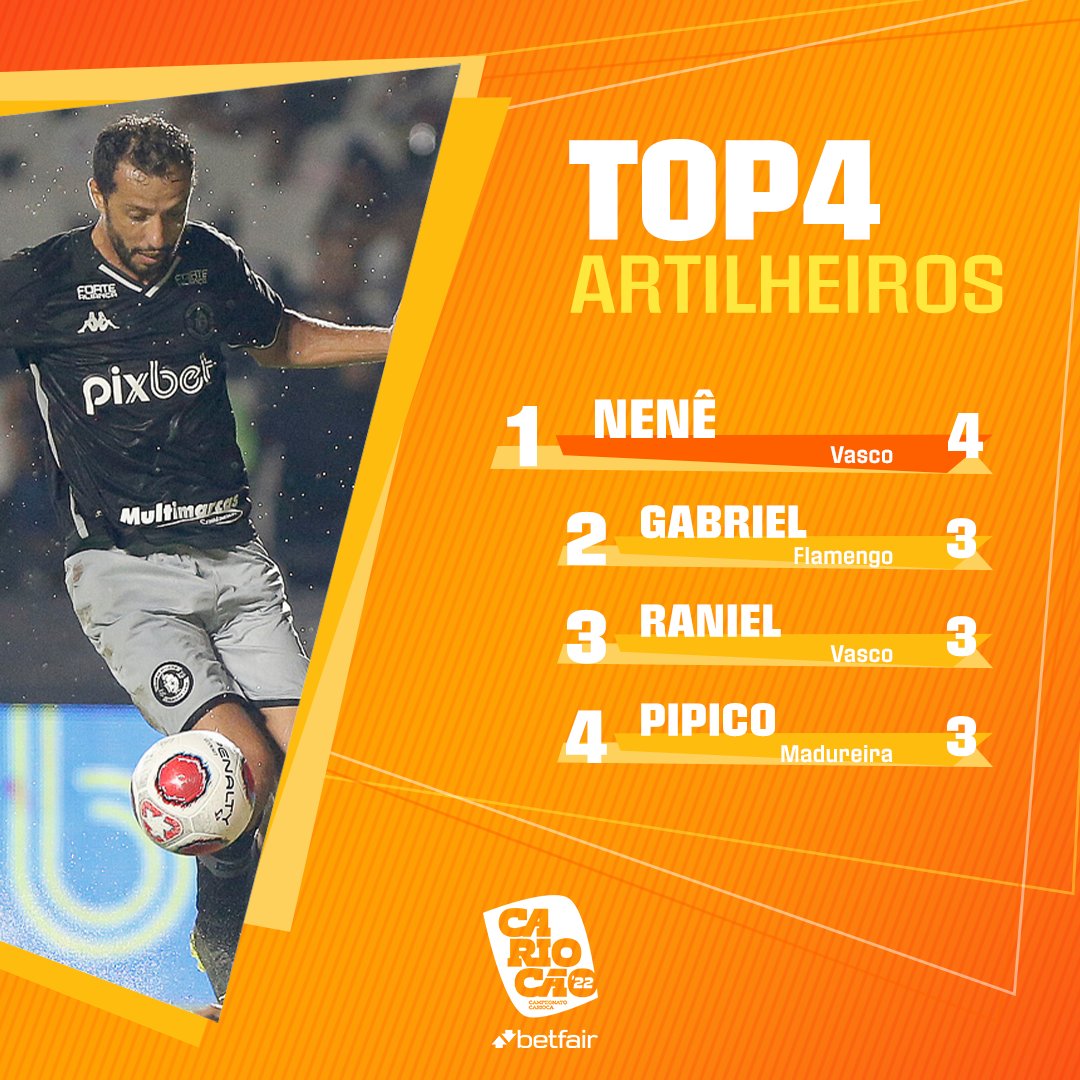 O ranking de artilheiros do #CariocãoBetfair22 tá assim até o momento!