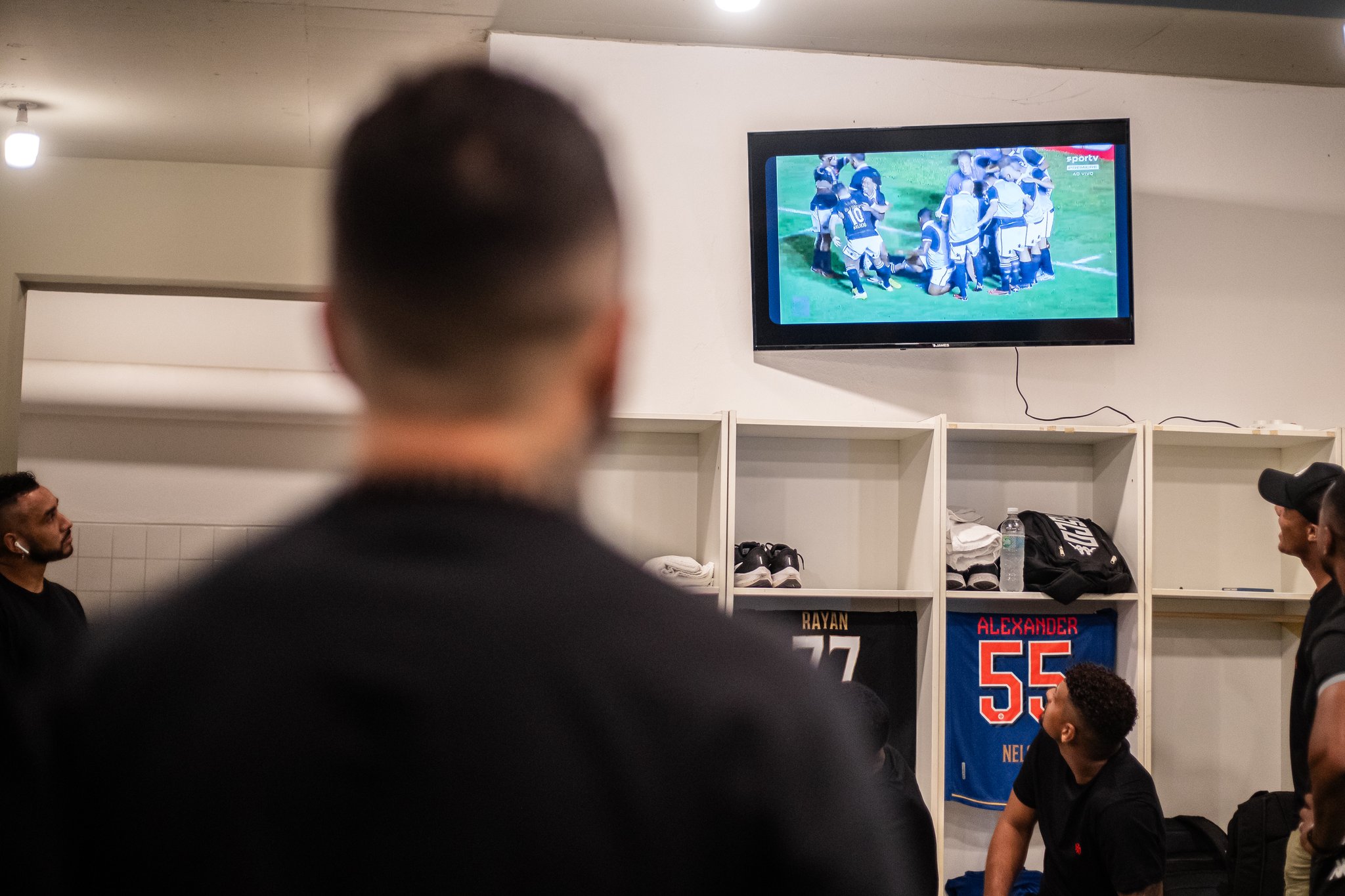 No vestiário, elenco principal assiste partida contra o Boavista