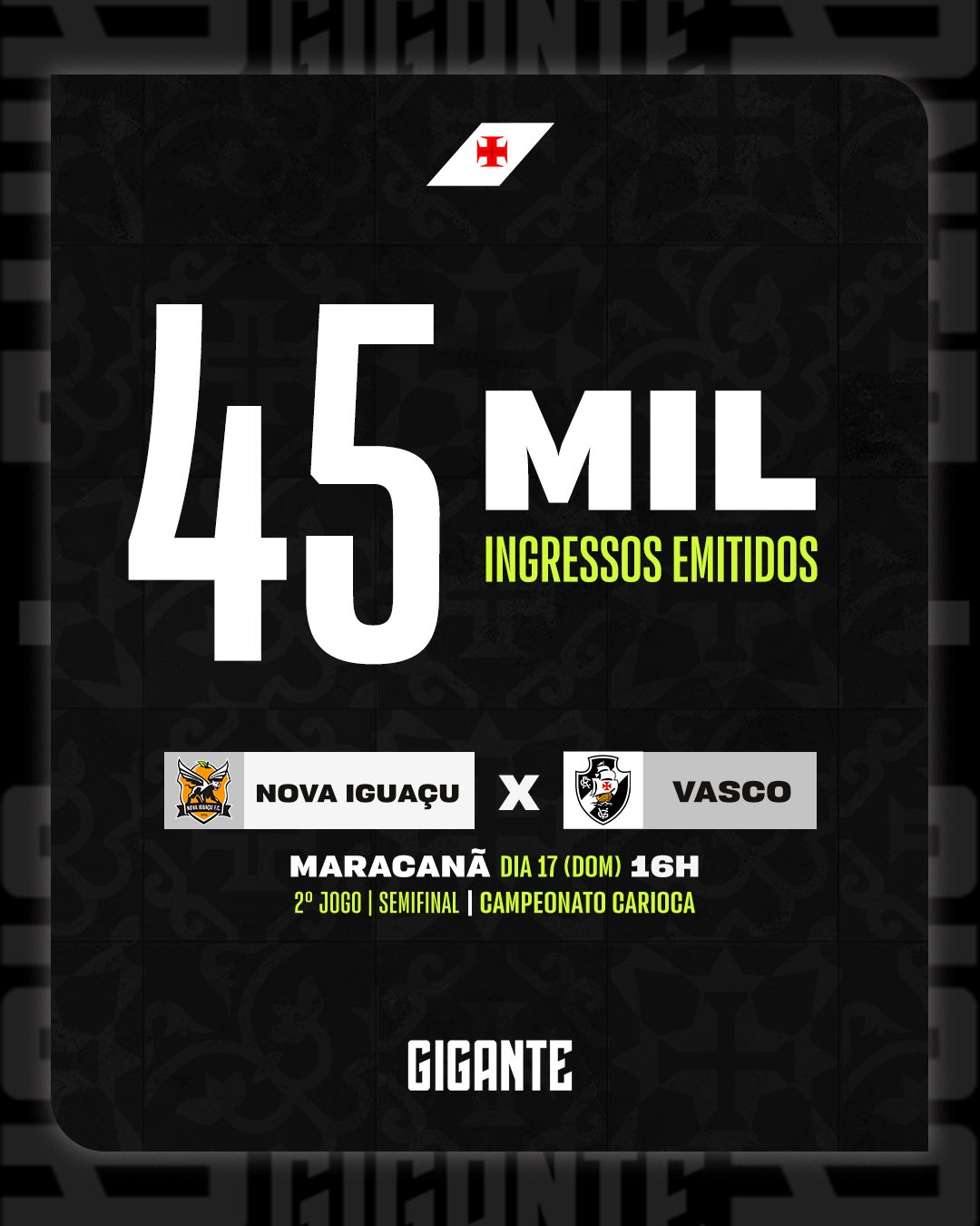 Nova Iguaçu x Vasco: 45 mil ingressos já foram emitidos