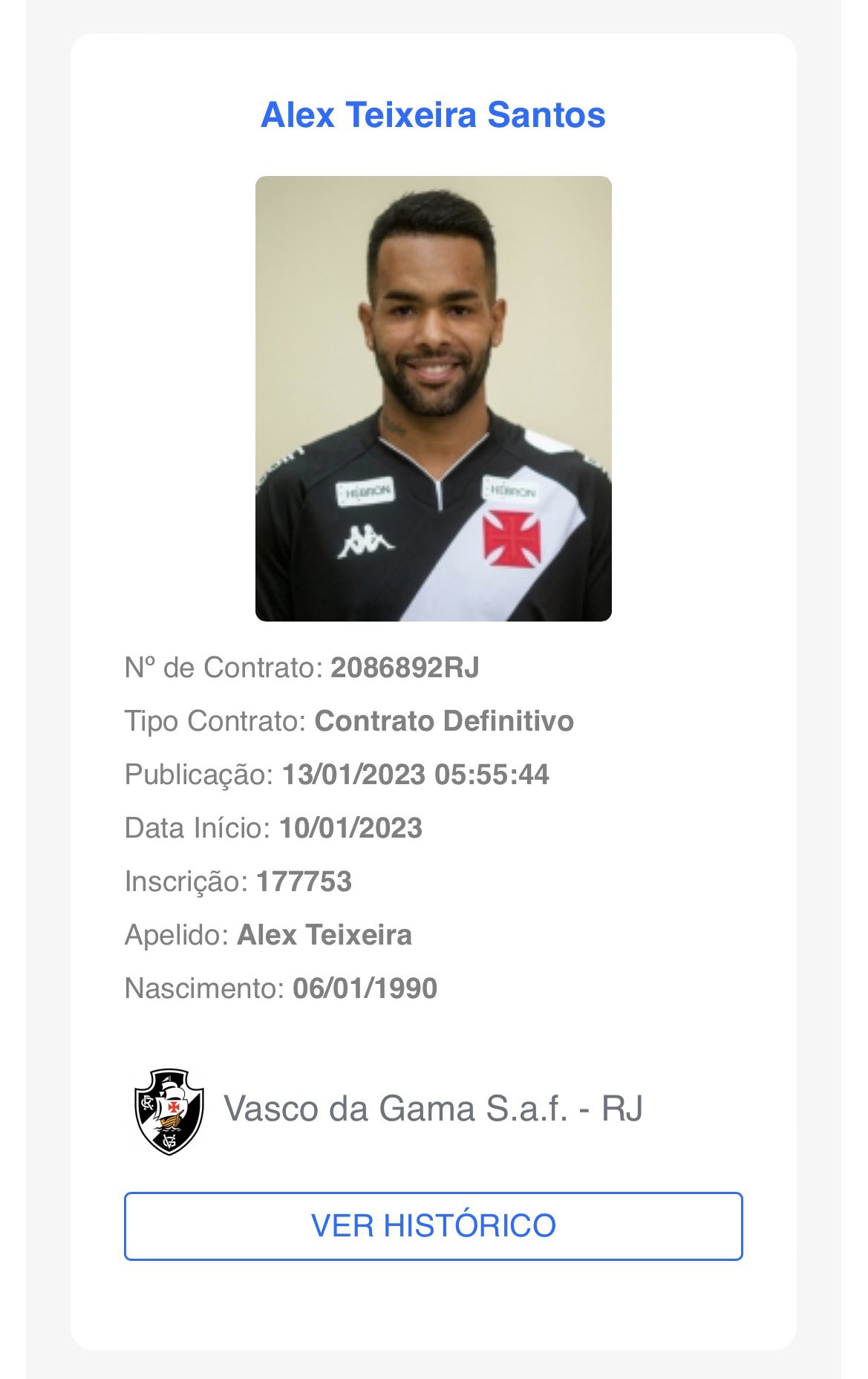 Novo contrato de Alex Teixeira com o @VascodaGama foi publicado no BID: