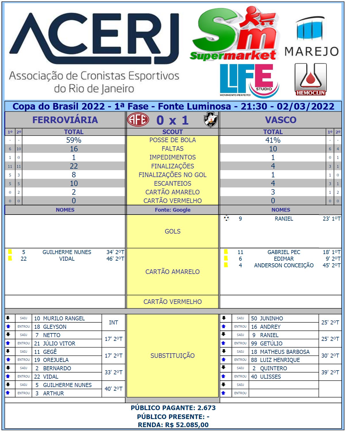Scout Final de Ferroviária e Vasco pela 1ª Fase da Copa do Brasil 2022 na Fonte Luminosa