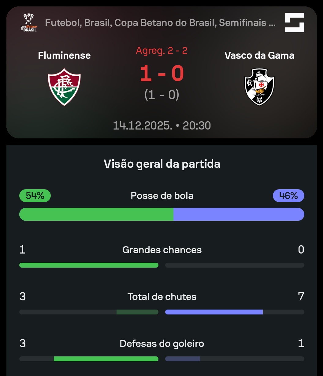 Fonte: X SofaScore Brasil