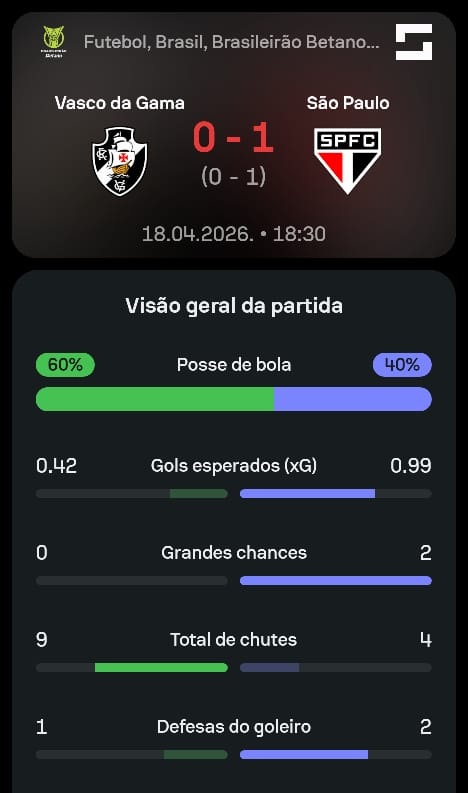 Fonte: X SofaScore Brasil- SuperVasco