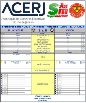 Scout do 1º Tempo de Fluminense e Vasco pela 3ª Rodada do Campeonato Brasileiro 2024 no Maracanã #Acerjinforma #brasileirao2024 #FLUxVAS #Fluminense #Vasco