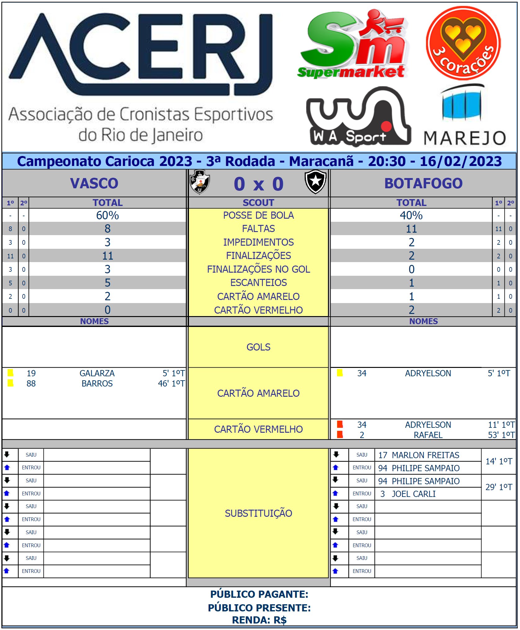 Scout do 1º Tempo de Vasco e Botafogo pela 3ª Rodada do Campeonato Carioca 2023 no Maracanã