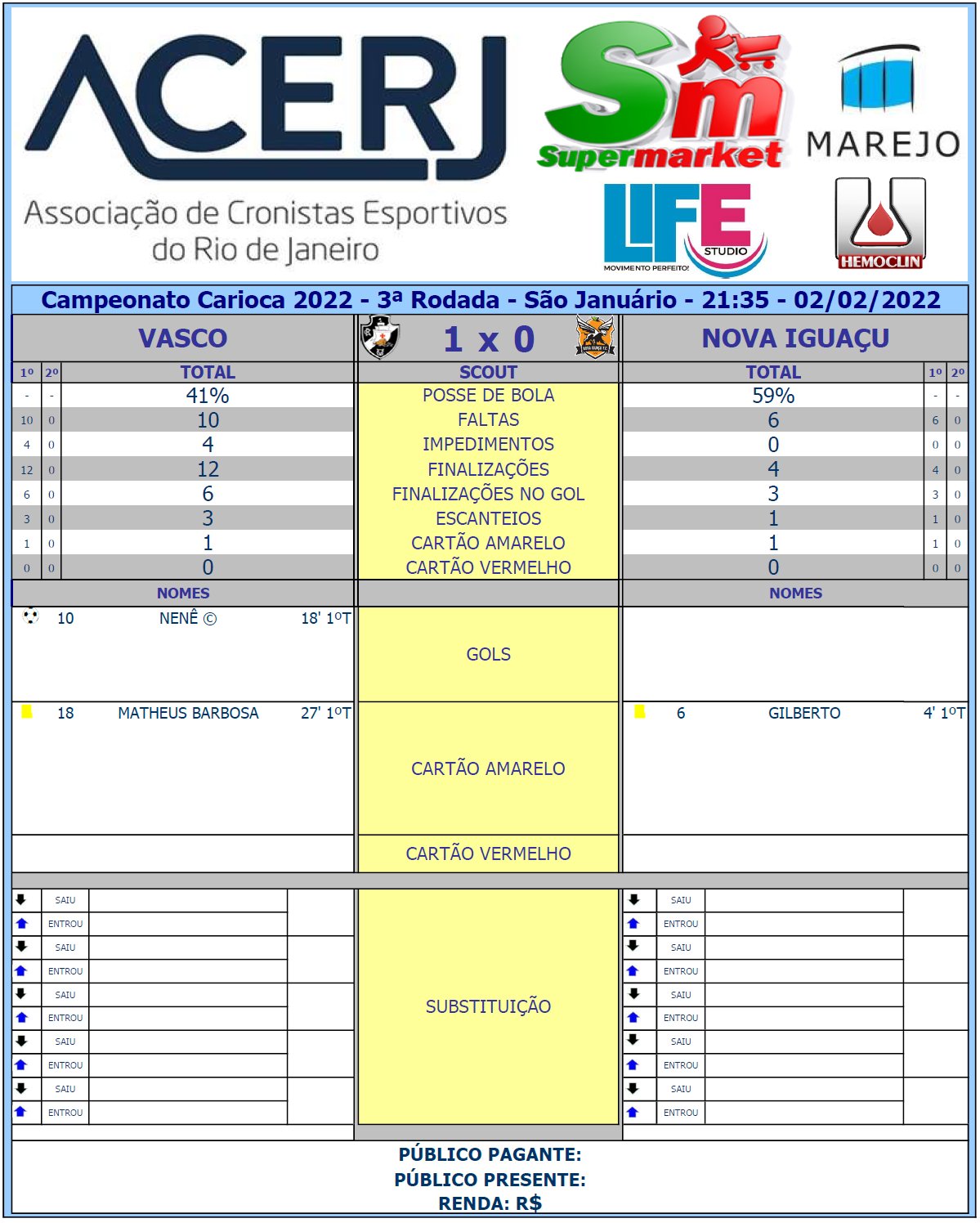 Scout do 1º tempo de Vasco e Nova Iguaçu pela 3ª Rodada do Campeonato Carioca 2022 em São Januário