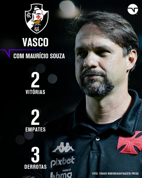 Em sete jogos, esses são os números de Maurício Souza no Vasco. Até a chegada do treinador, o Cruzmaltino nào tinha nenhuma derrota na Série B...