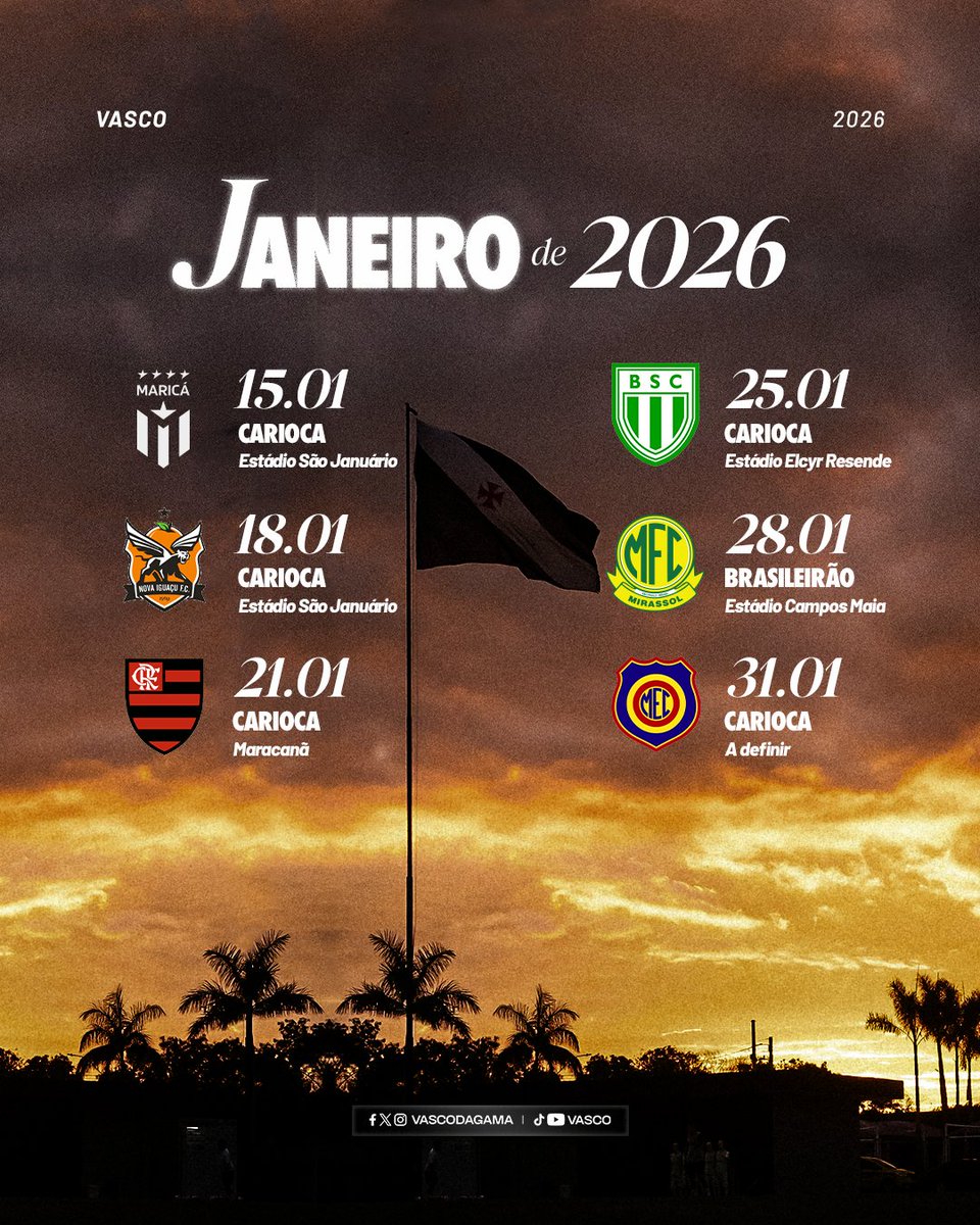 O calendário do Vasco em janeiro