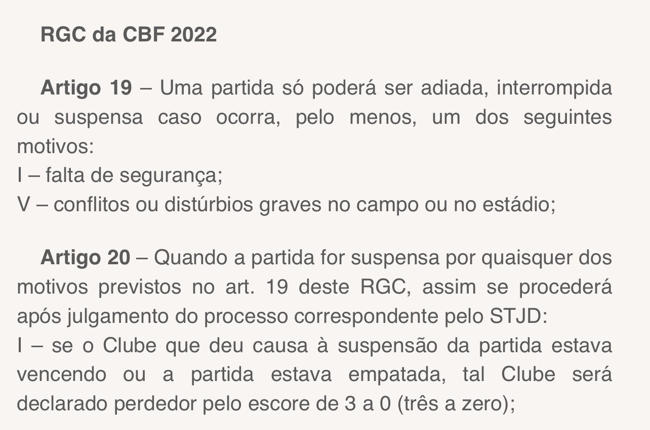Como está claro na lei, caso os auditores que irão julgar concedam os pontos ao Vasco, terão um respaldo gigante do que consta no CBJD ( Código Brasileiro de Justiça Desportiva).