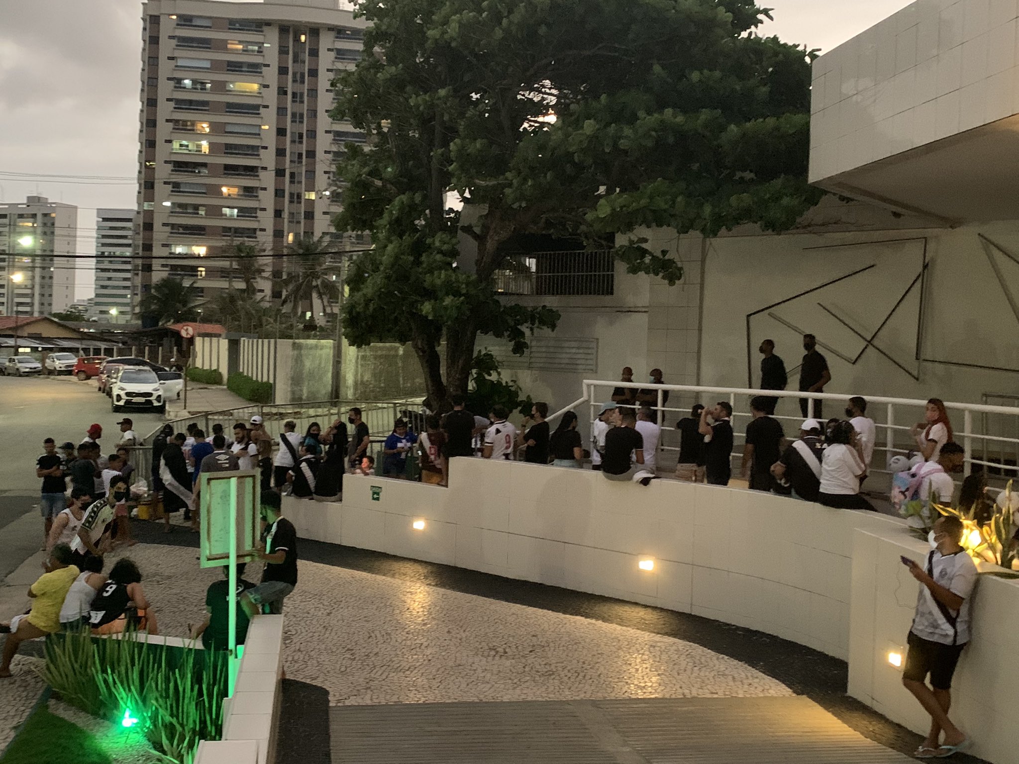 Tem uma galera por aqui, apesar do pé d’água que tá ameaçando cair. Ônibus com a delegação do Vasco chega a qualquer momento #gevas