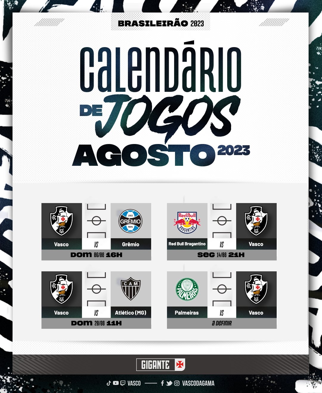 Os jogos do Vasco em agosto