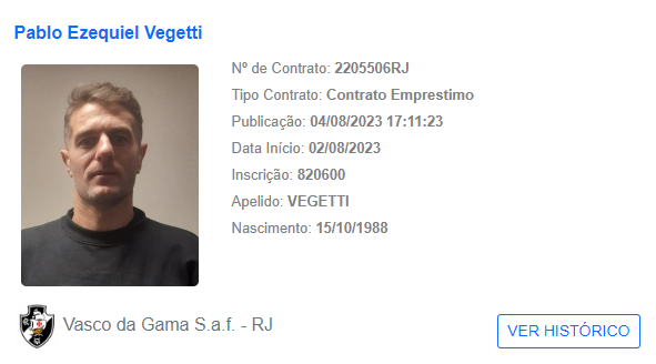 Pablo Vegetti é inscrito a tempo no BID da CBF e está apto para estrear contra o Grêmio, no próximo domingo (6), em São Januário. A partida não terá a presença do público.