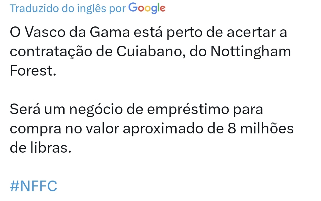 🤯O Vasco da Gama está perto de acertar a contratação de Cuiabano, do Nottingham Forest.
