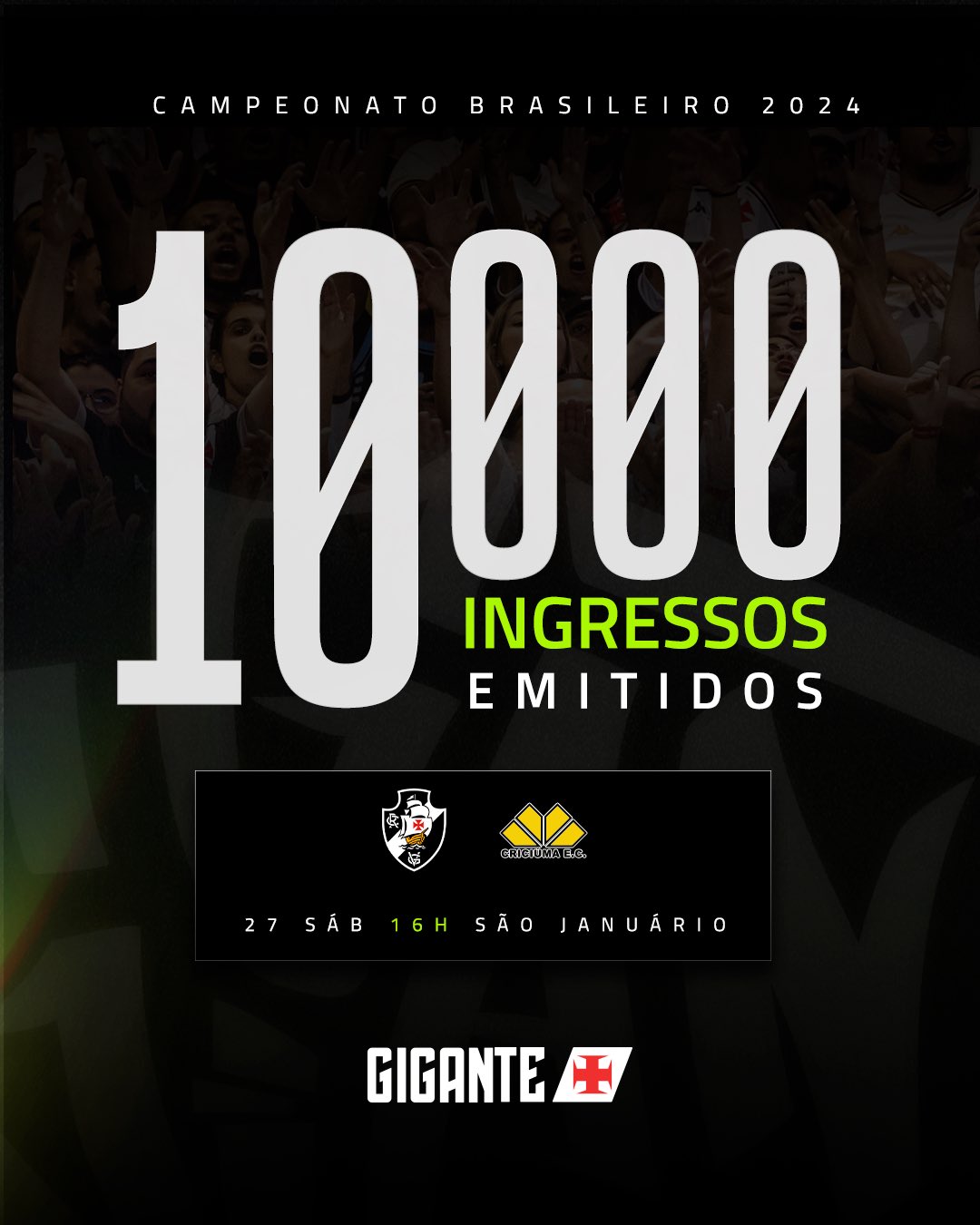 Parcial: 10 mil ingressos já foram emitidos para Vasco x Criciúma