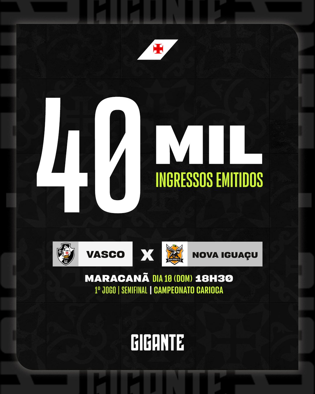 Parcial: 40 mil ingressos emitidos para Vasco x Nova Iguaçu