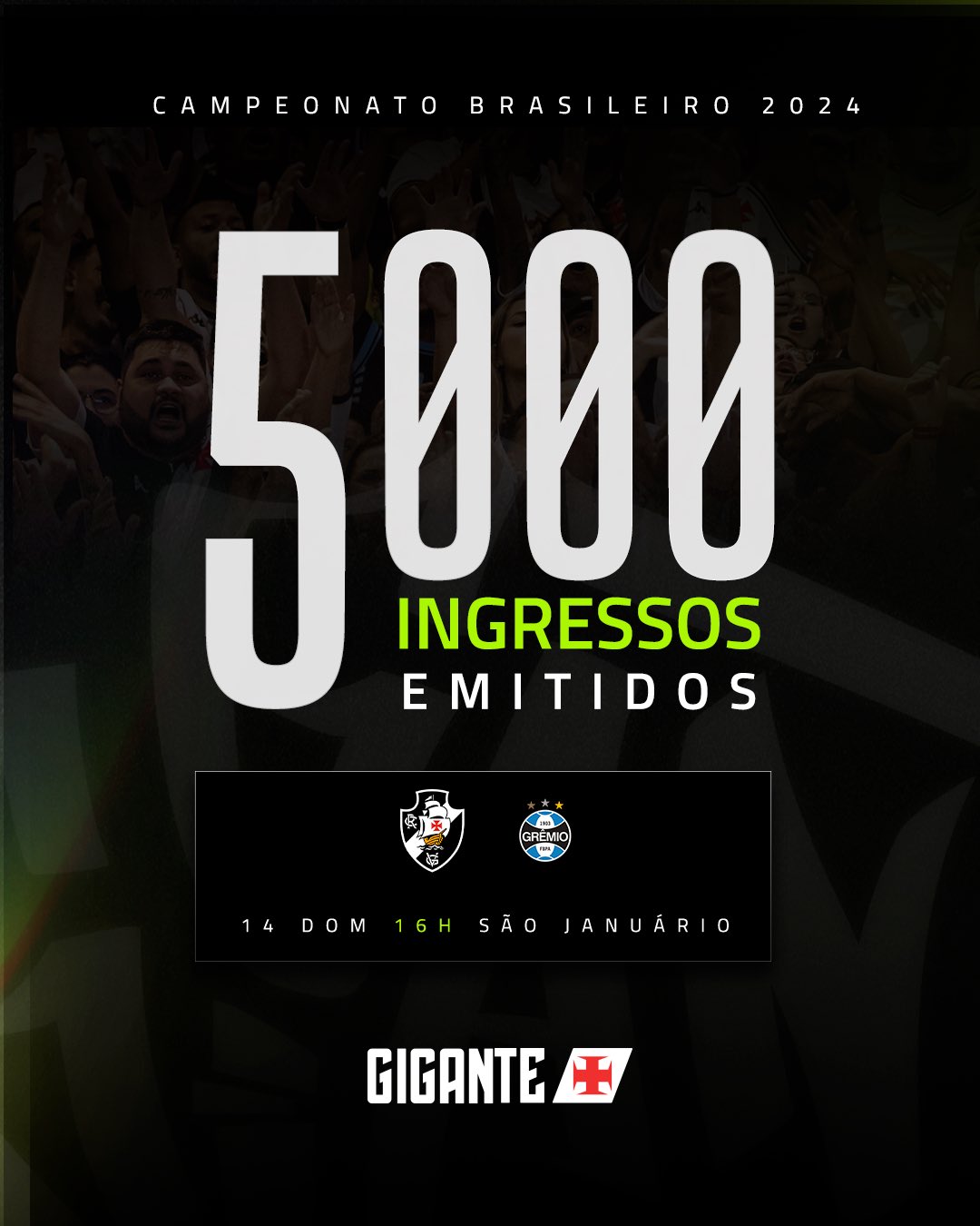 E já foram 5 mil ingressos emitidos para VASCO x Grêmio