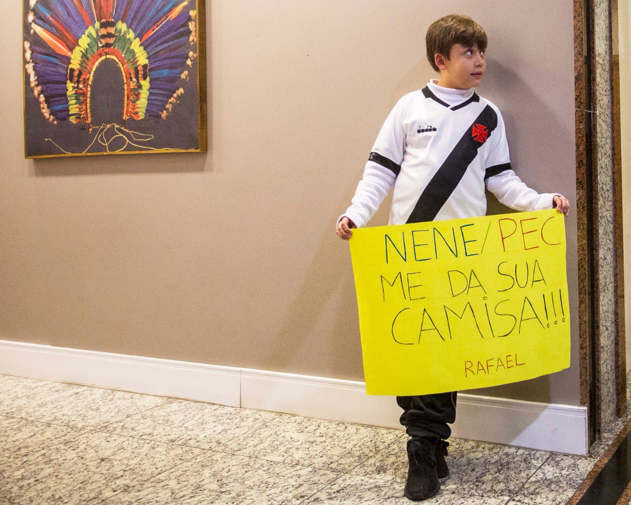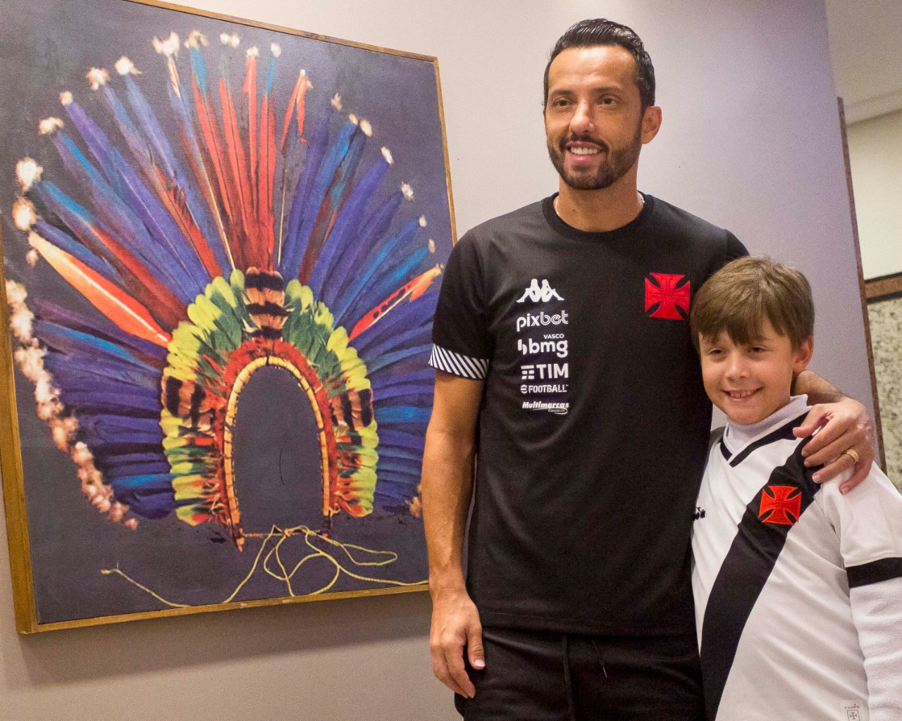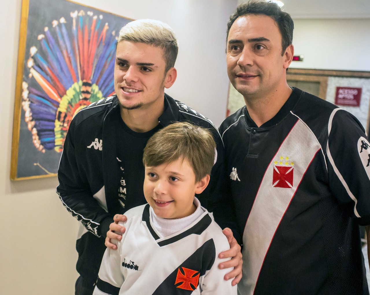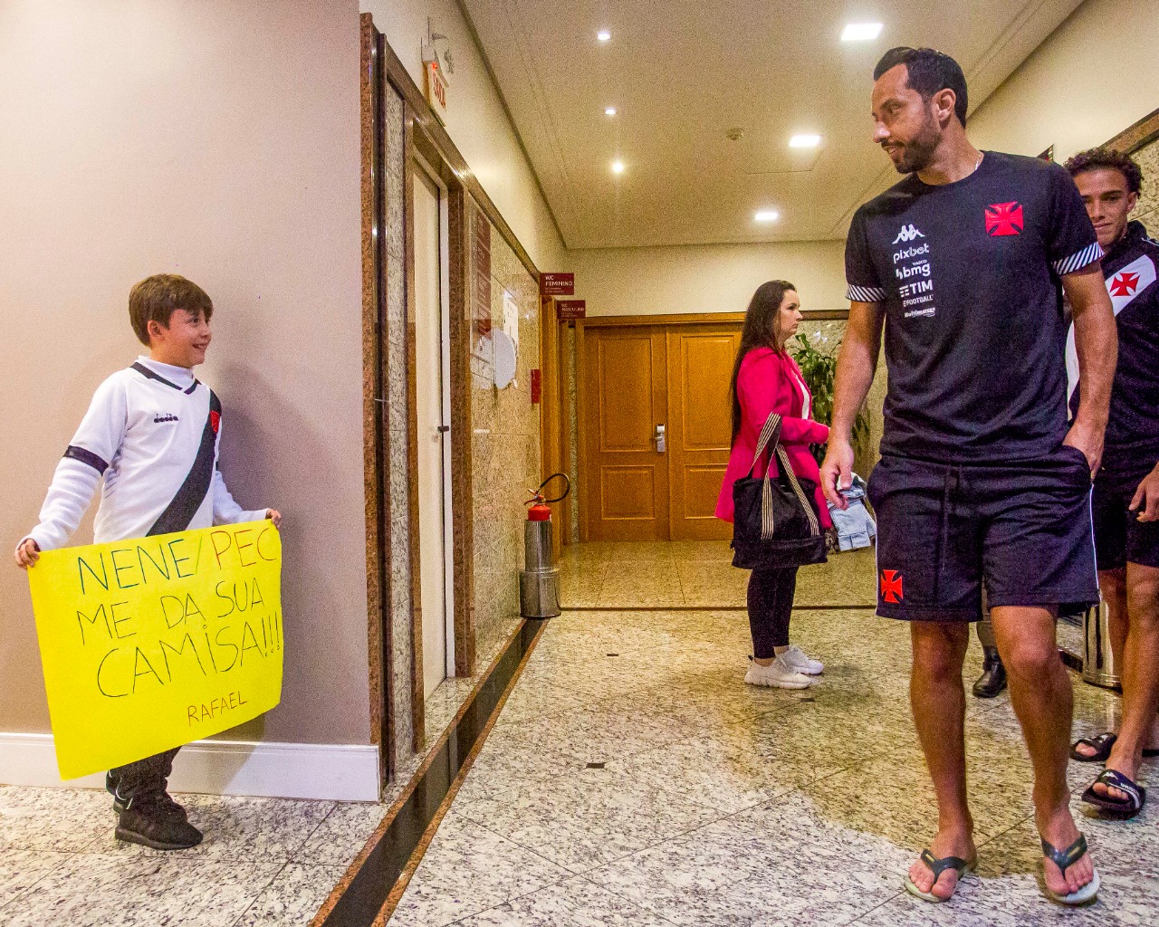 Pequeno torcedor vascaíno tira fotos com Nenê e Gabriel Pec