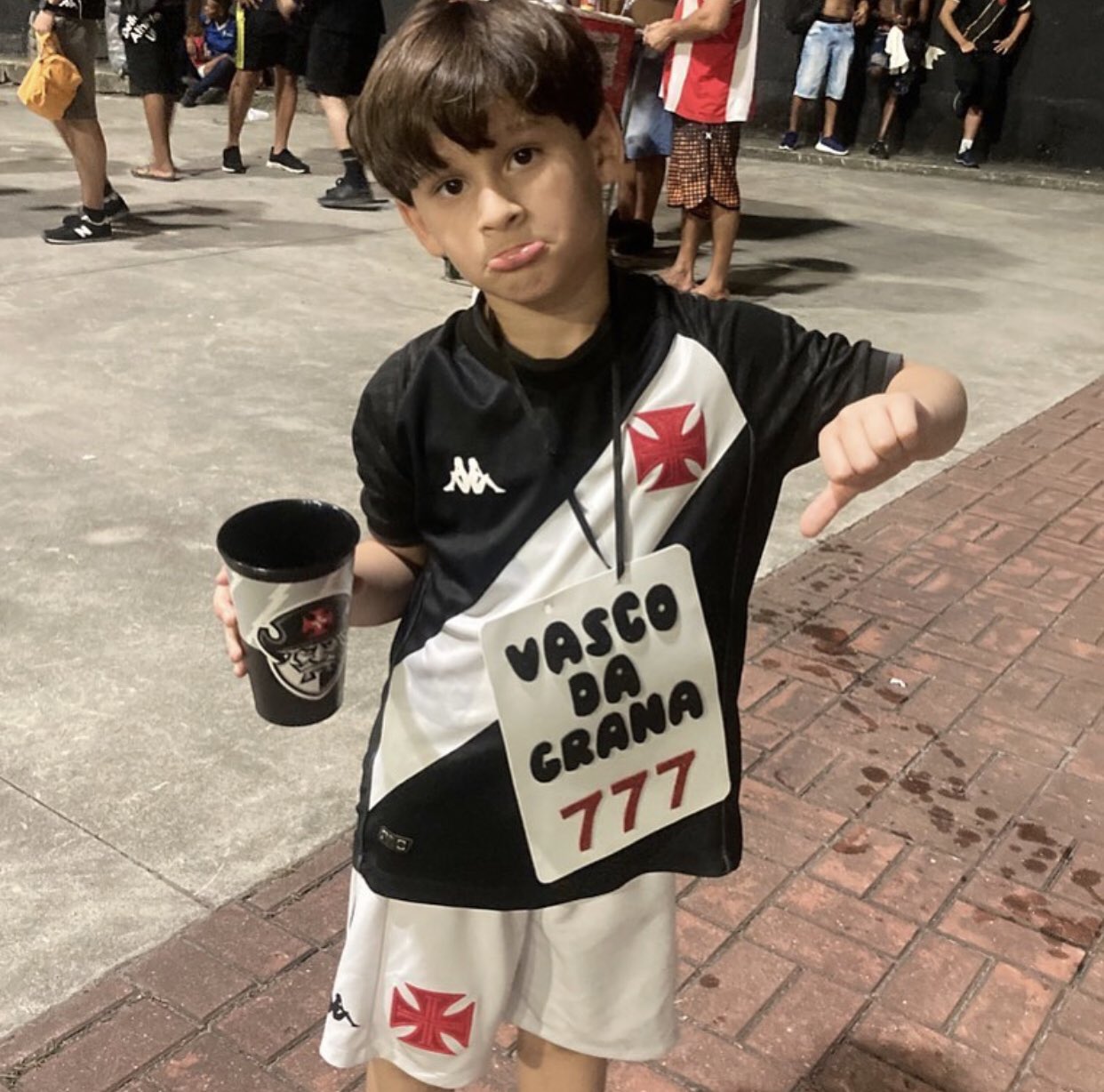 Pequeno vascaíno posa para foto trajado de Vasco 777
