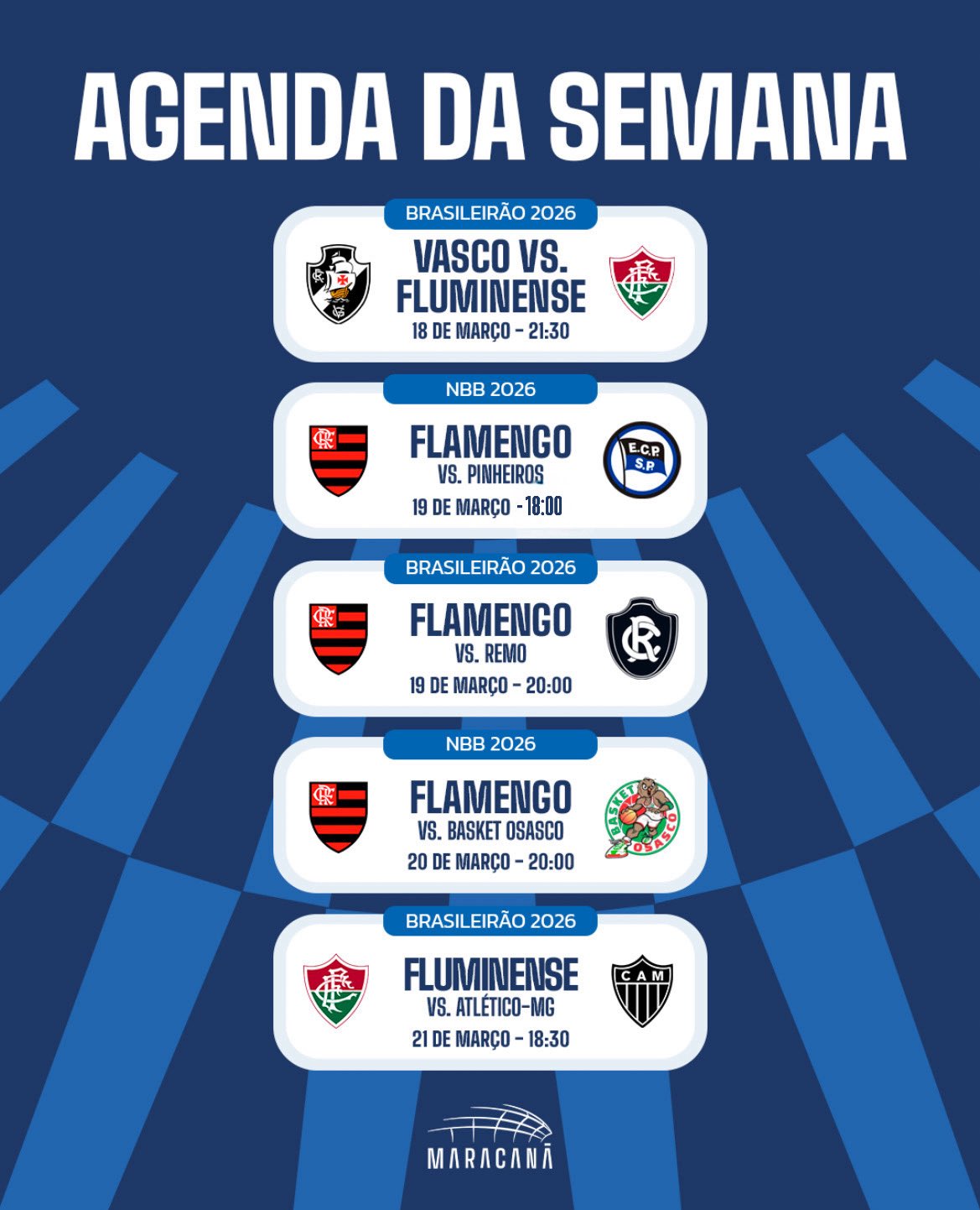 Perfil do Maracanã posta agenda da semana de seus jogos